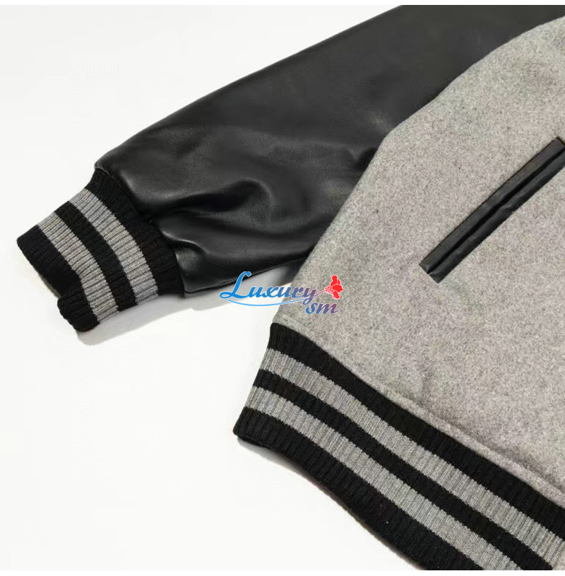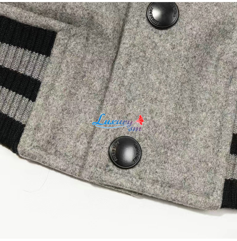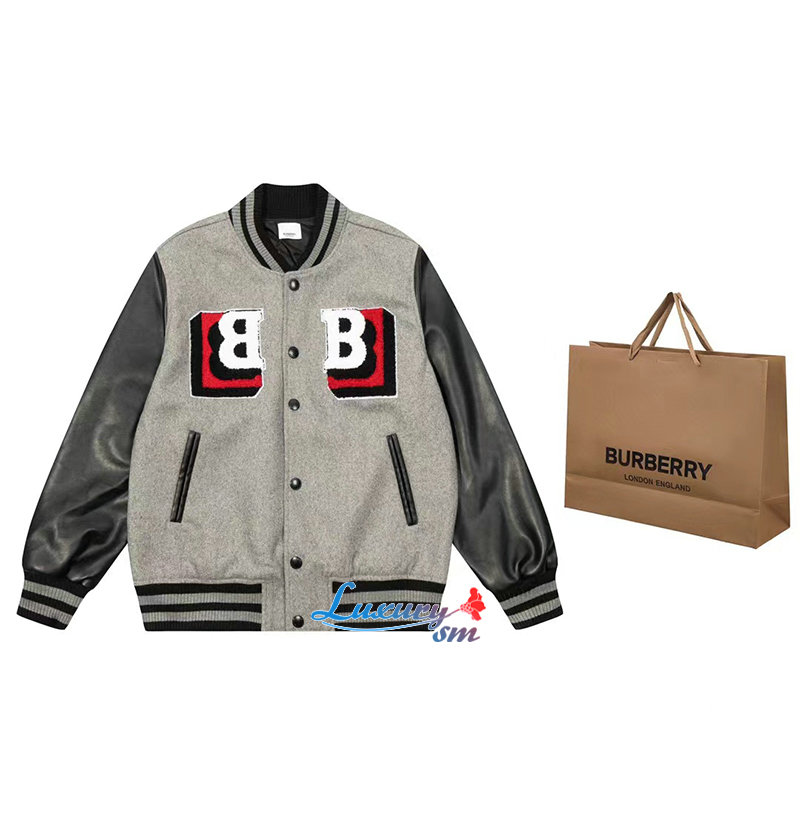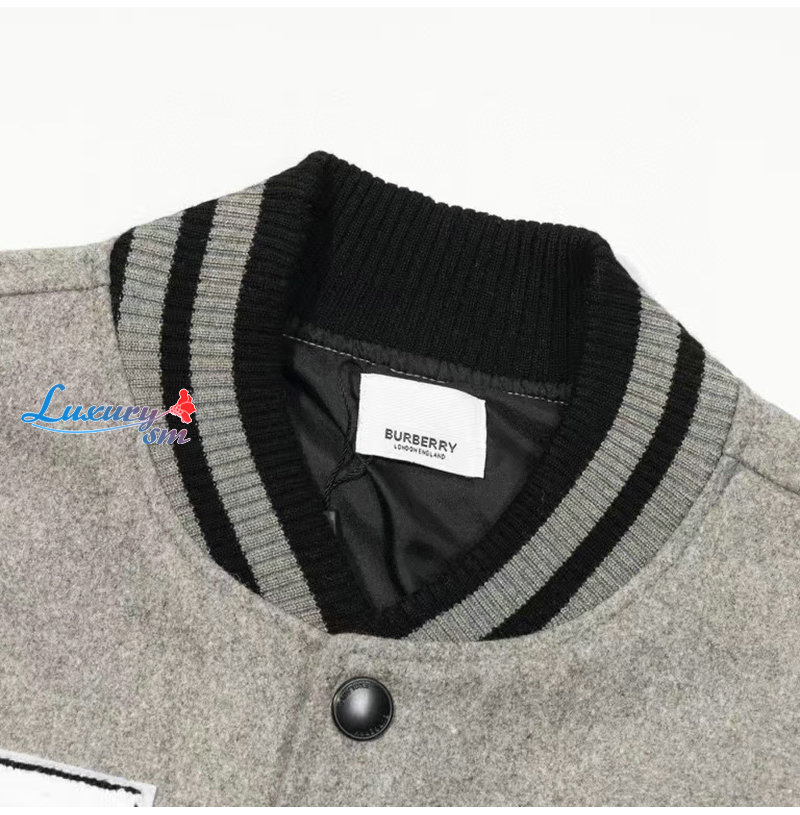 BURBERRY-10041 버버리 그레이 아플리케 장식 베이스볼 재킷 남성용