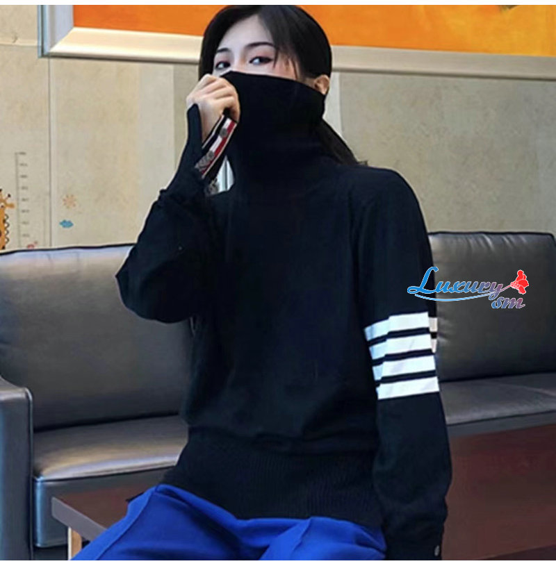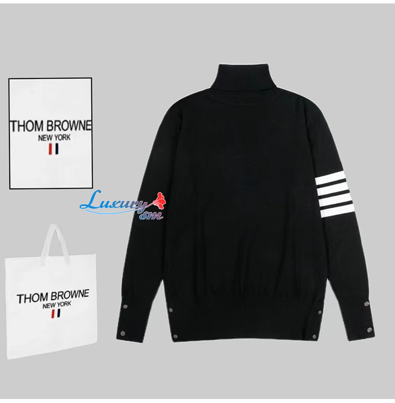 THOM BROWNE-10109 톰 브라운 화이트 스트라이프 장식 목폴라 티셔츠 남여공용 가격 : 160,000원