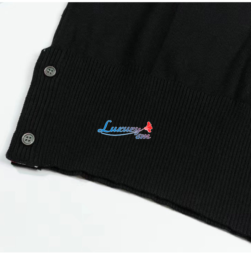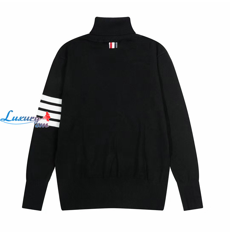 THOM BROWNE-10108 톰 브라운 블랙 스트라이프 장식 목폴라 티셔츠 남여공용