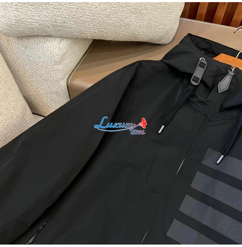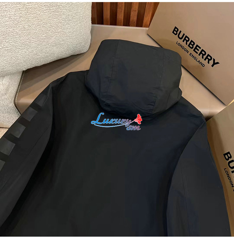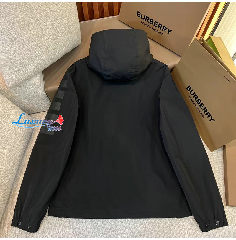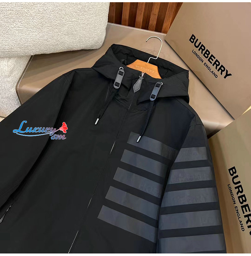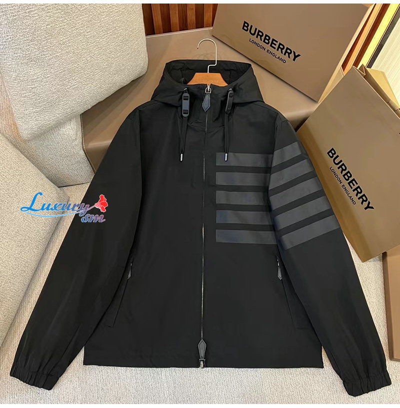BURBERRY-10167 버버리 블랙 스트라이프 장식 바람막이 후드 재킷 남여공용