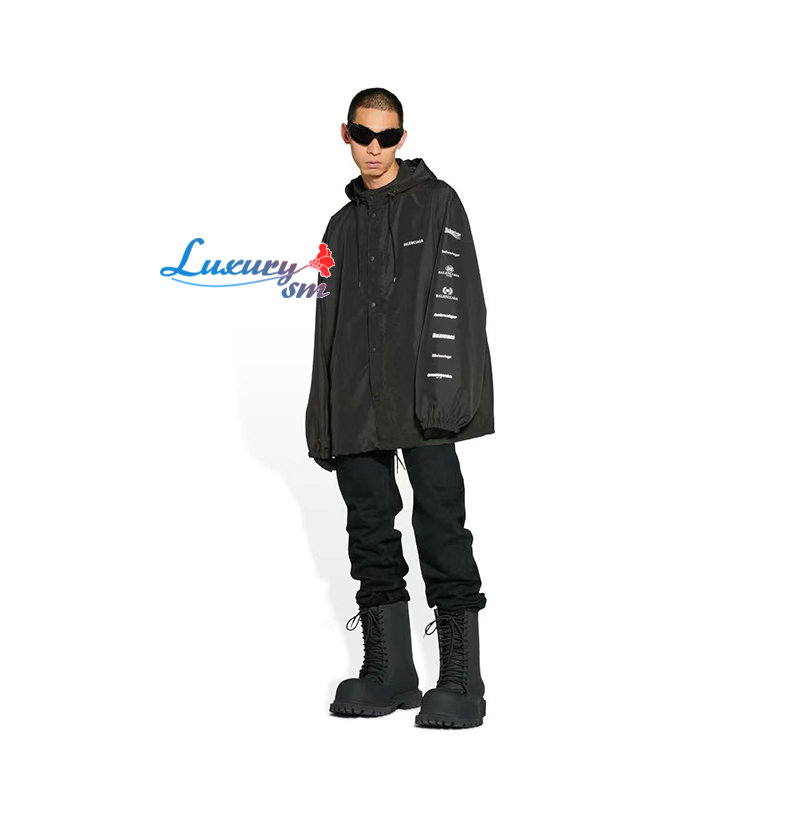 BALENCIAGA-101512 발렌시아가 블랙 프린트 장식 바람막이 후드 재킷 남여공용