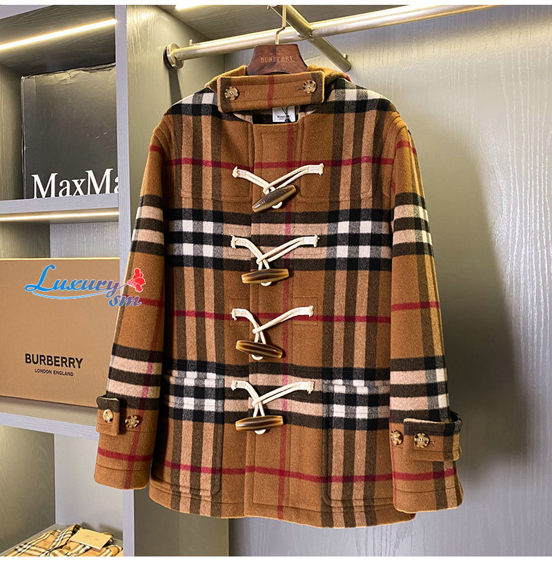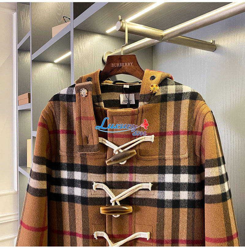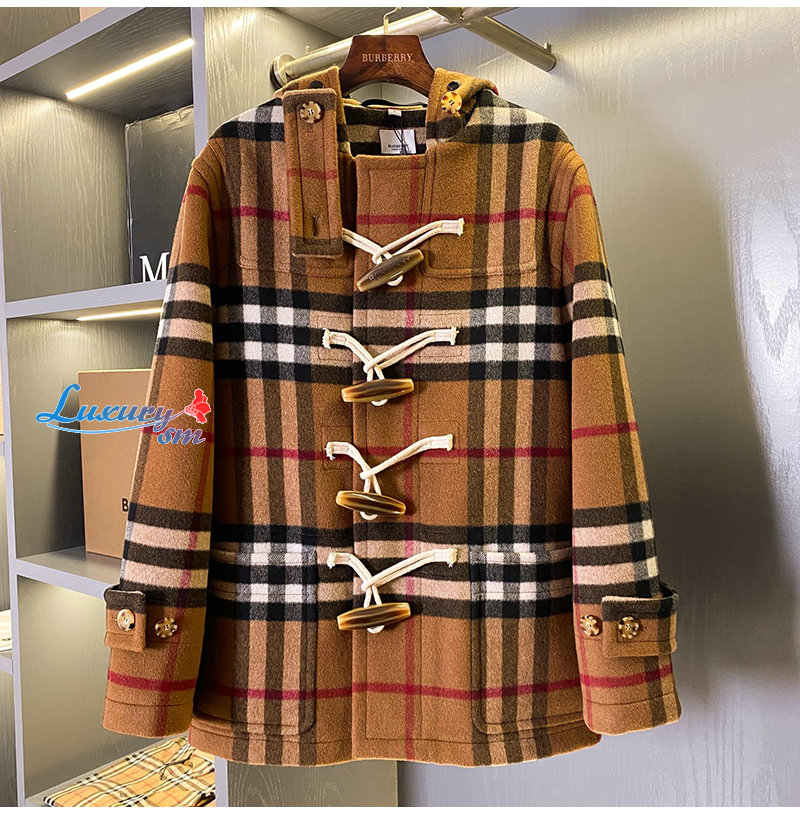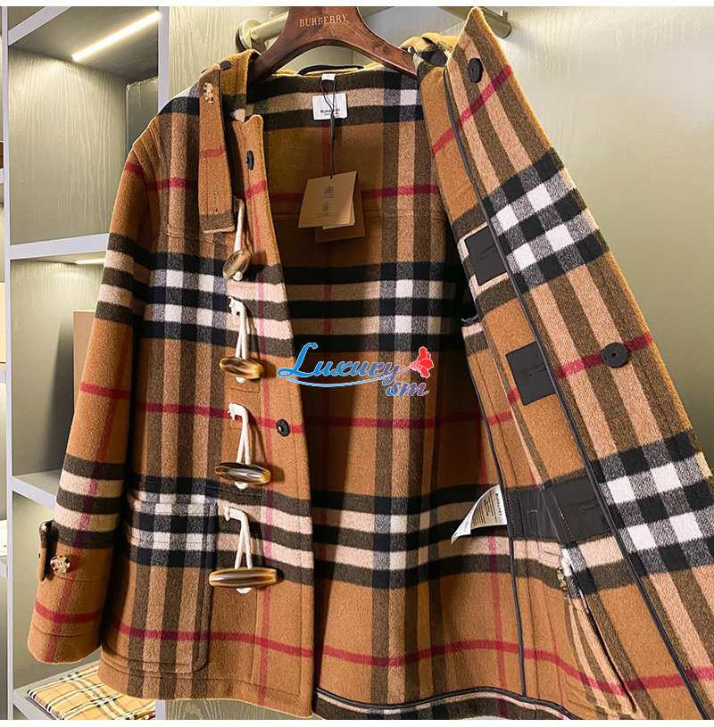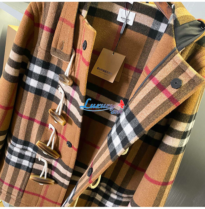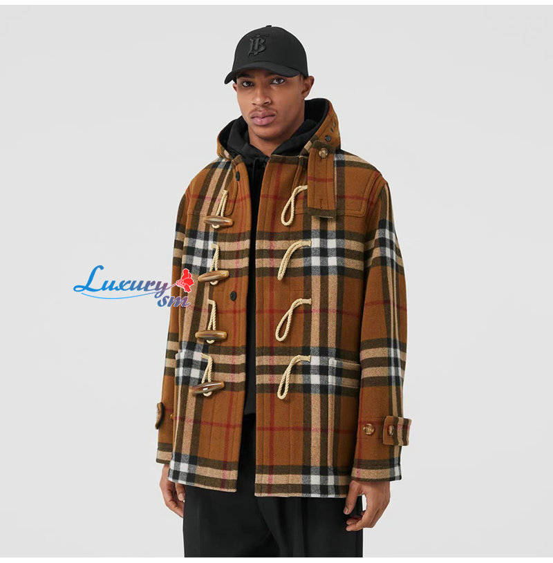 BURBERRY-11125 버버리 브라운 체크 무늬 캐시미어 후드 재킷 남여공용