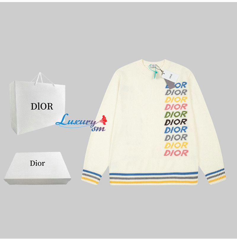 DIOR-01043 디올 아이보리 스트라이프 장식 스웨터 남여공용