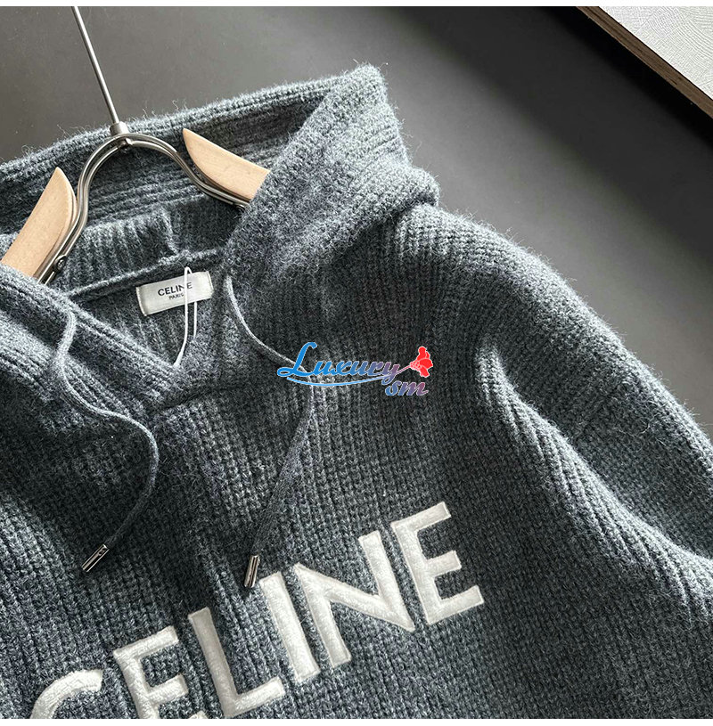 CELINE-01053 셀린느 그레이 CELINE 아플리케 장식 후드 티셔츠 남여공용