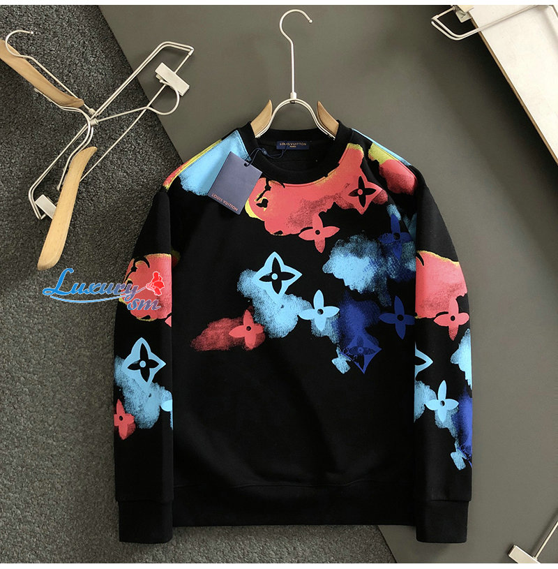 LOUIS VUITTON-01055 루이비통 블랙 모노그램 프린트 장식 스웨트셔츠 남성용