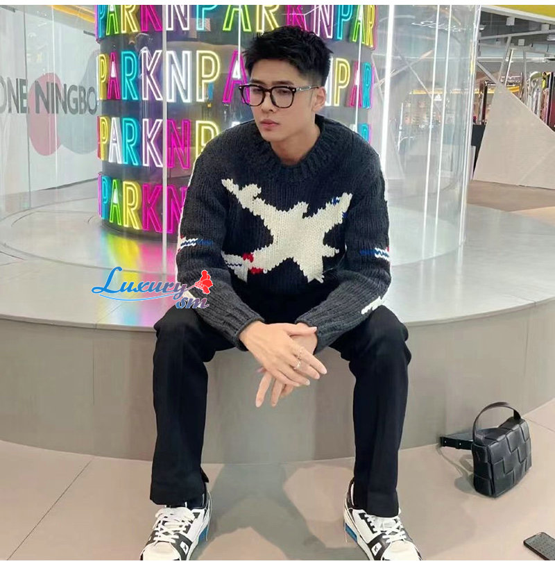 LOUIS VUITTON-01079 루이비통 그레이/화이트 니트 코튼 스웨터 남여공용