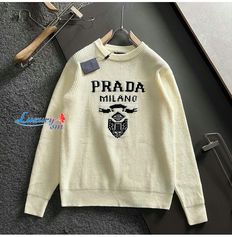 PRADA-01145 프라다 아이보리 니트 코튼 스웨터 남성용