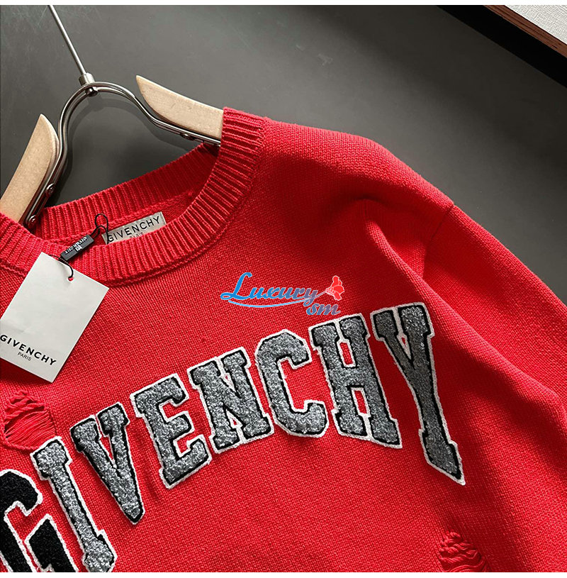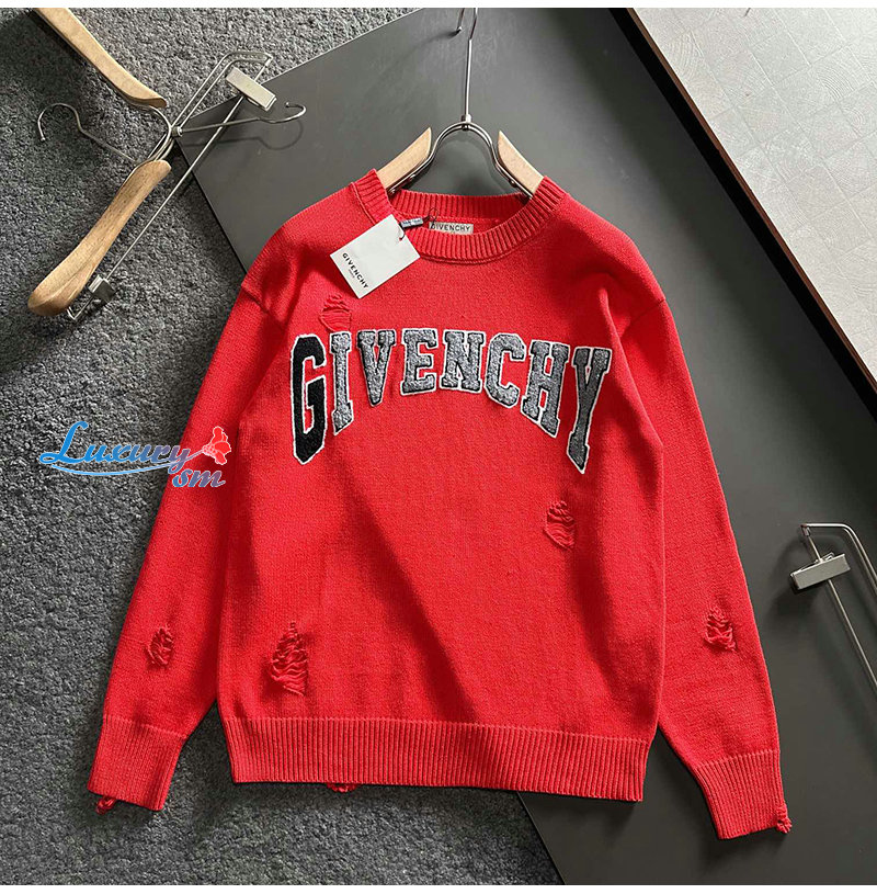 GIVENCHY-01148 지방시 레드 아플리케 장식 스웨터 남성용
