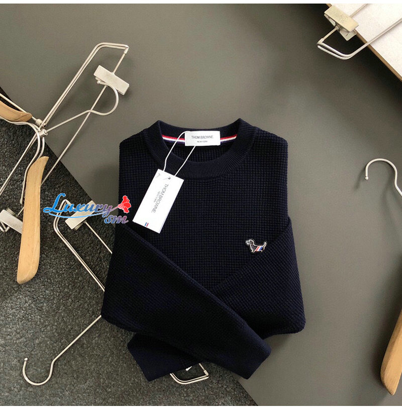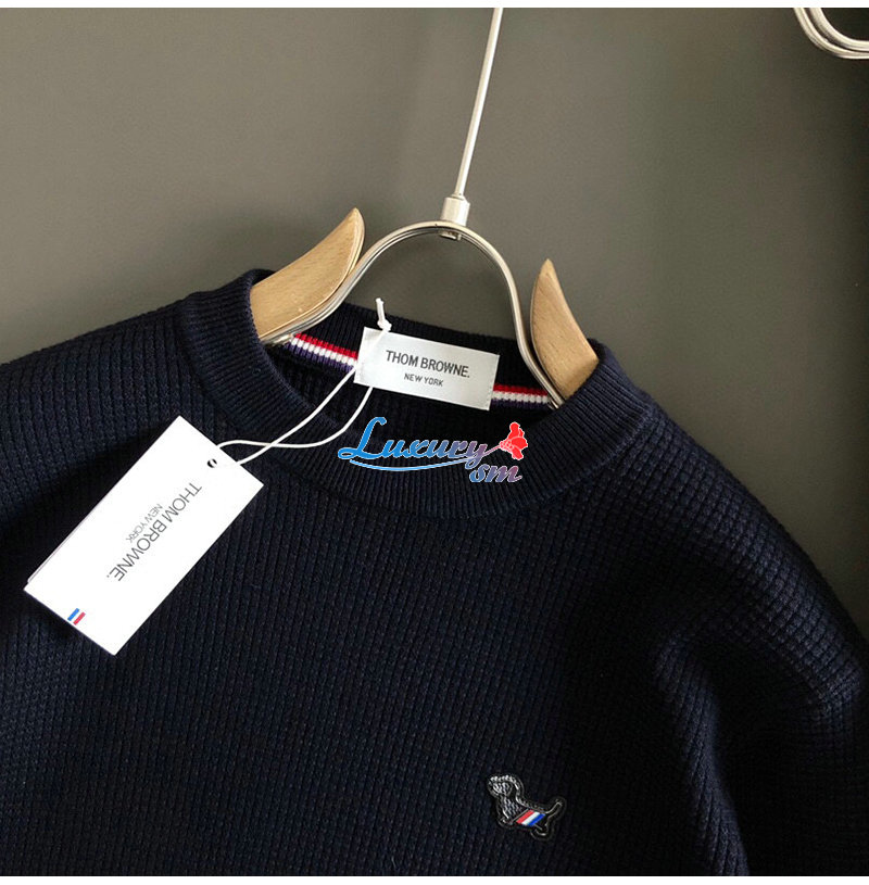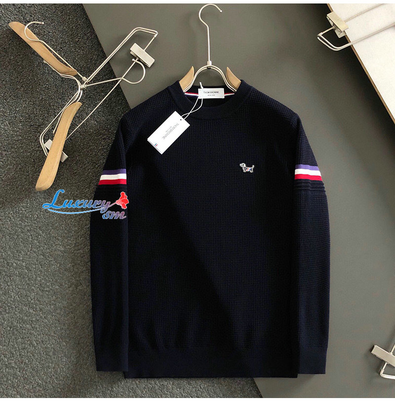THOM BROWNE-01154 톰 브라운 네이비 스트라이프 장식 스웨터 남성용
