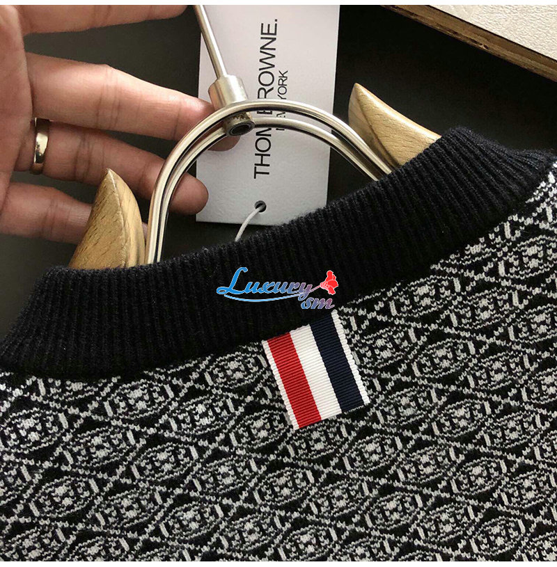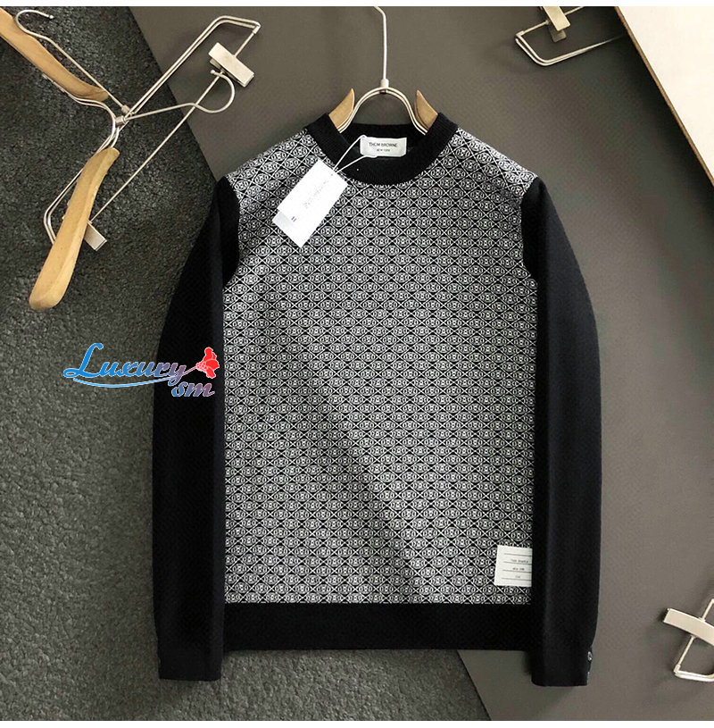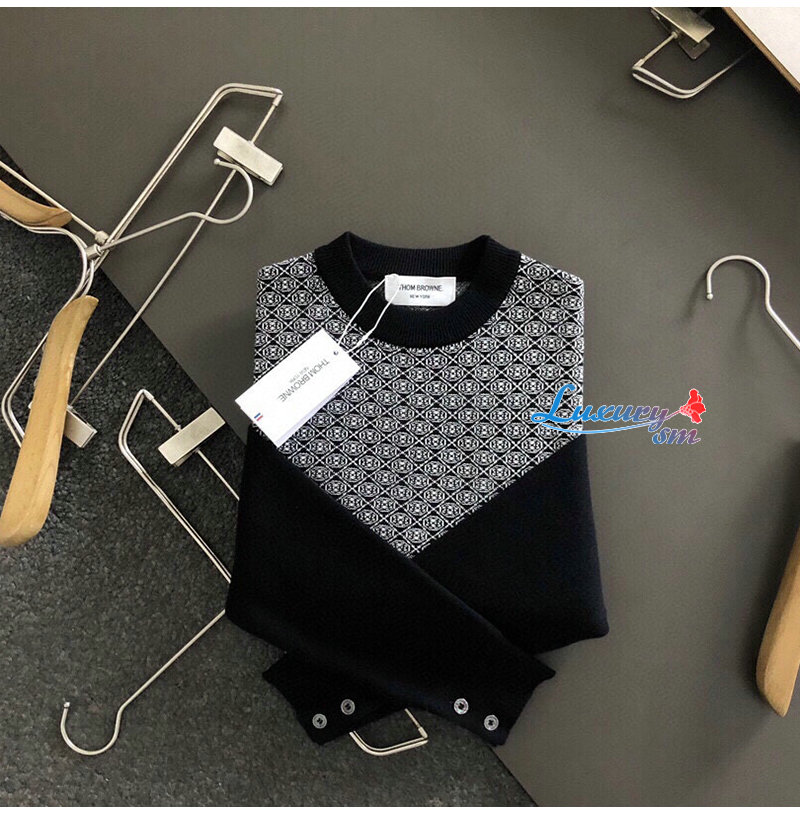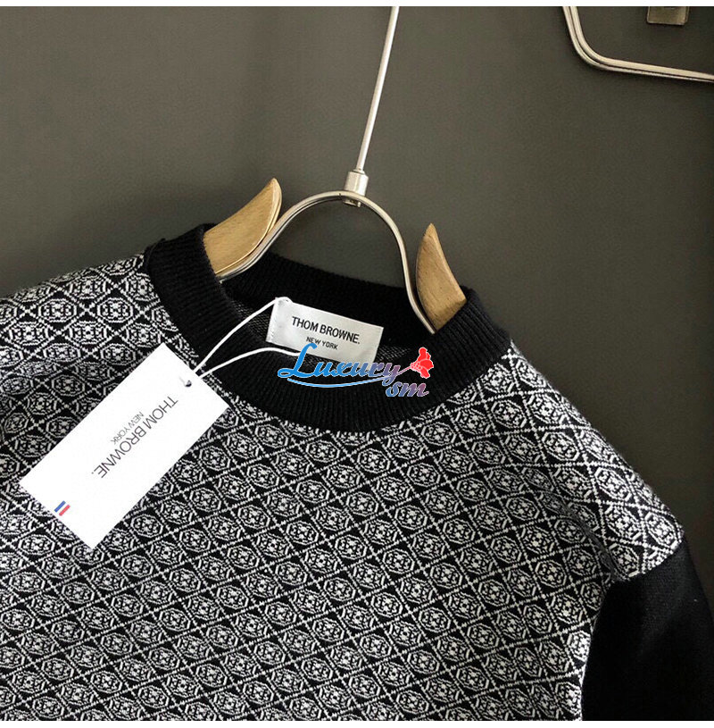 THOM BROWNE-012114 톰 브라운 블랙/화이트 니트 코튼 스웨터 남성용