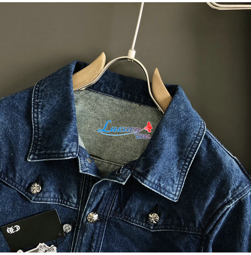 CHROMEHEARTS-012115 크롬하츠 블루 아플리케 장식 데님 셔츠 남성용