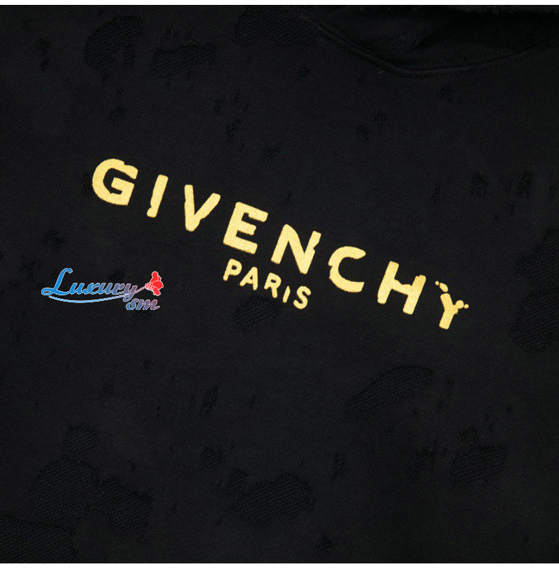 GIVENCHY-01266 지방시 블랙 아플리케 장식 빈티지 후드 티셔츠 남여공용