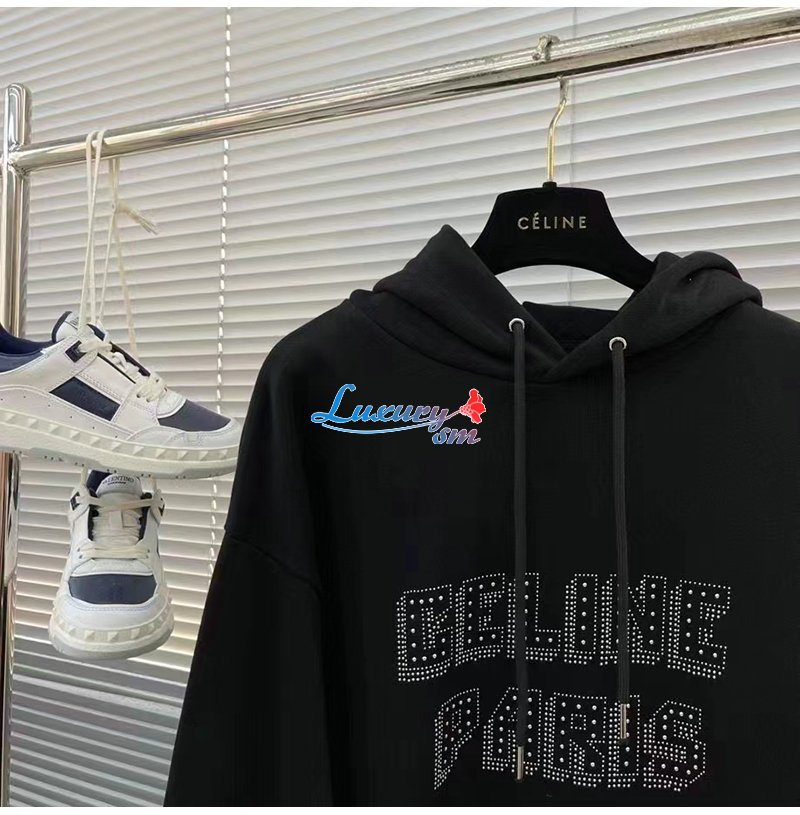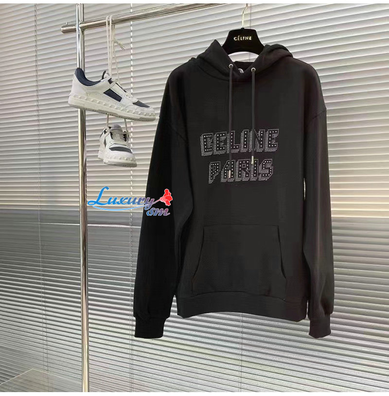 CELINE-03105 셀린느 블랙 스터드 장식 후드 티셔츠 남여공용