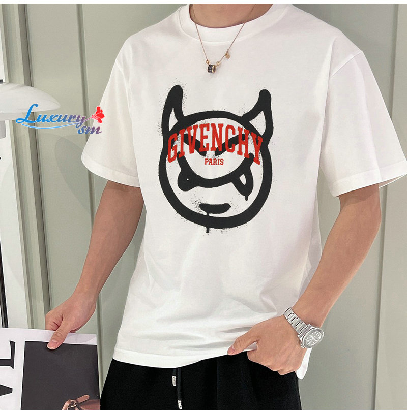 GIVENCHY-030915 지방시 화이트 프린트 장식 티셔츠 남성용
