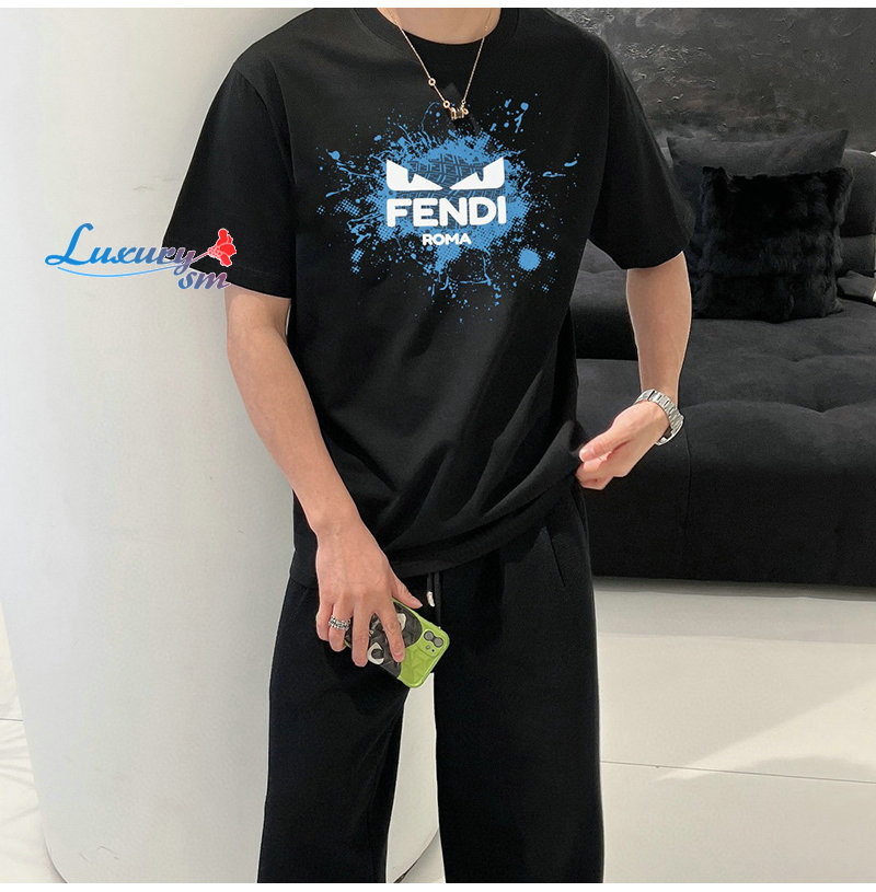 FENDI-030919 펜디 블랙 프린트 장식 티셔츠