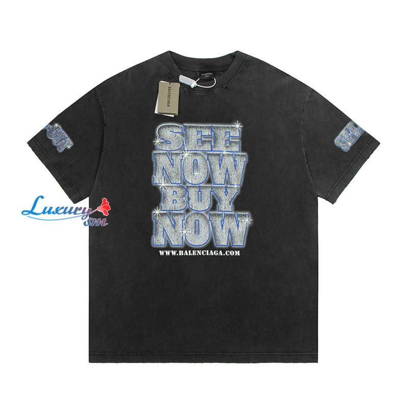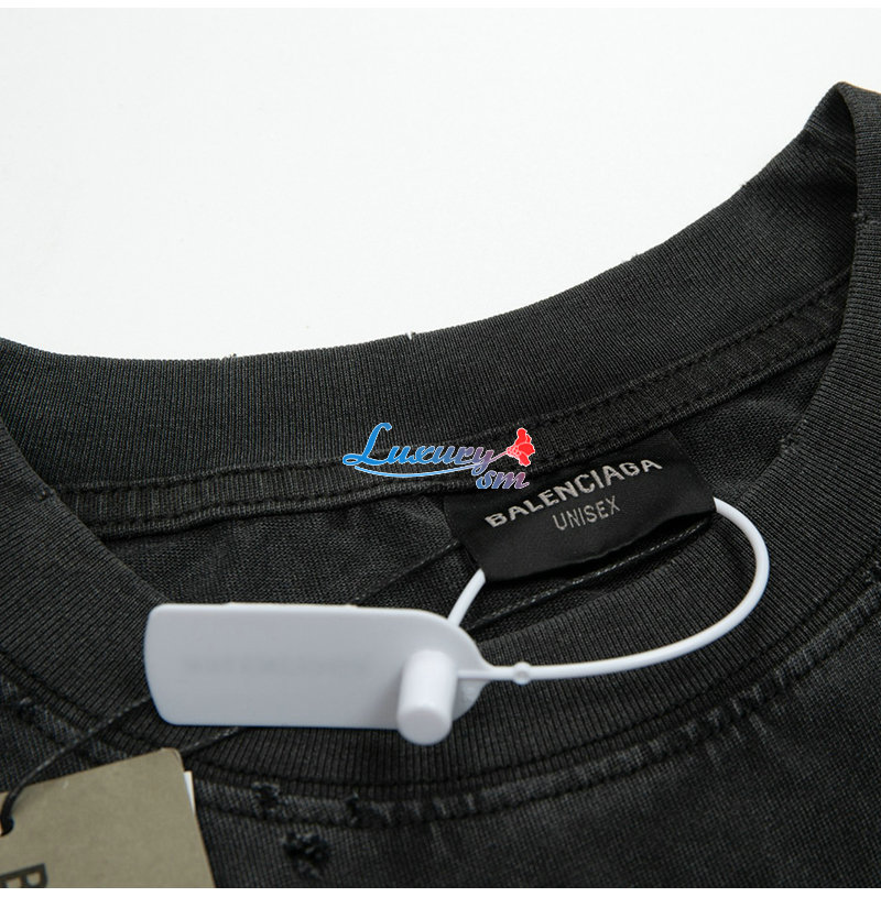 BALENCIAGA-03133 발렌시아가 블랙 프린트 장식 워싱 빈티지 티셔츠 남여공용