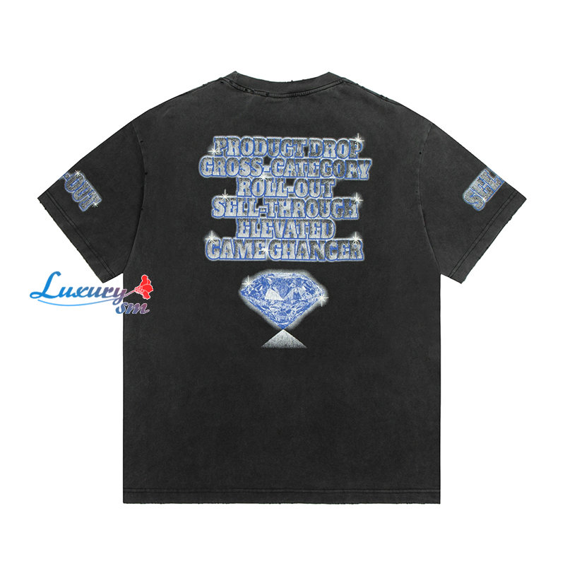 BALENCIAGA-03134 발렌시아가 블루 프린트 장식 워싱 빈티지 티셔츠 남여공용