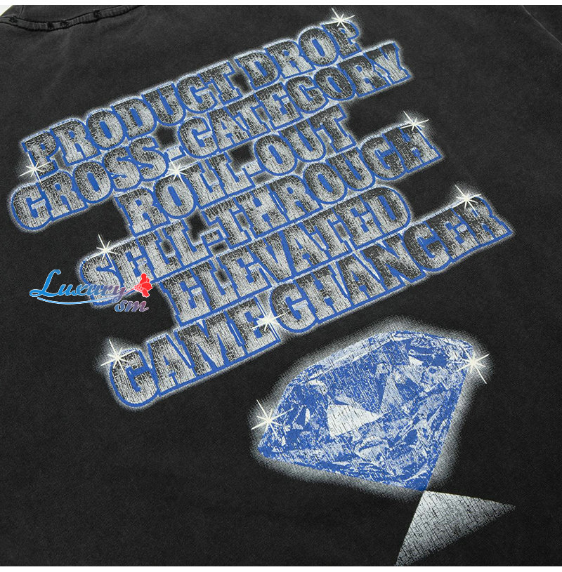 장식 워싱 빈티지 티셔츠 남여공용