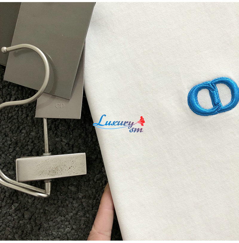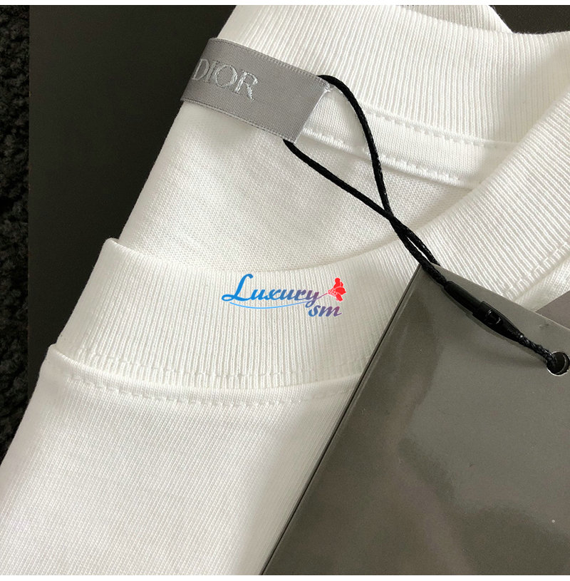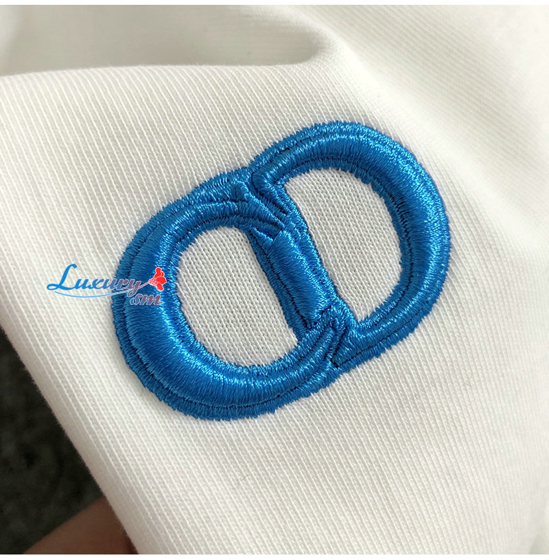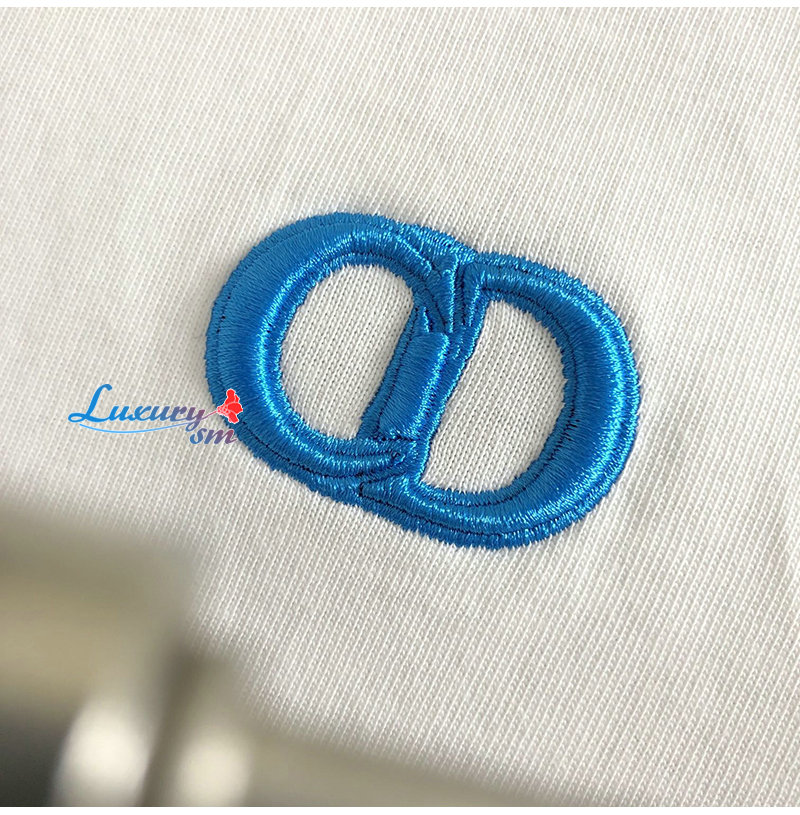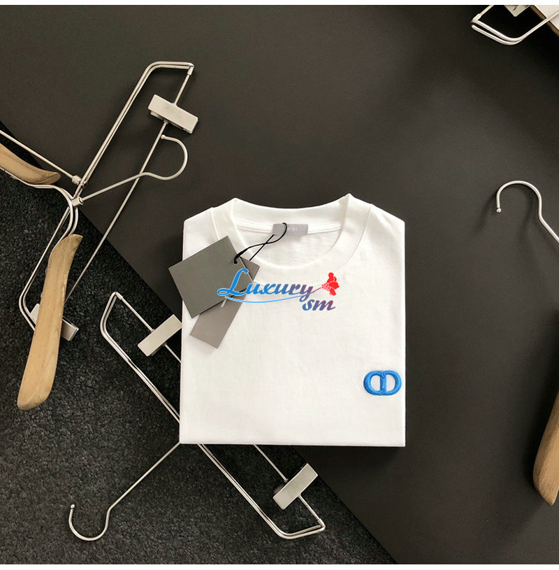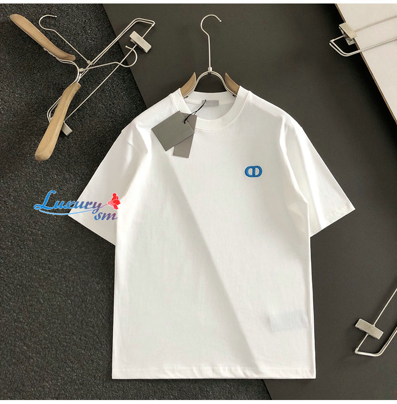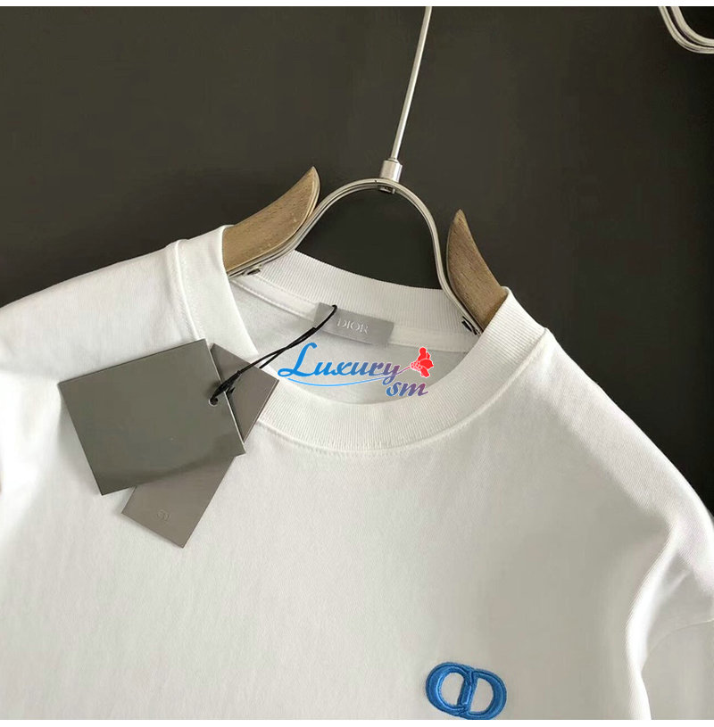 DIOR-03144 디올 화이트 CD 로고 아플리케 장식 티셔츠 남성용