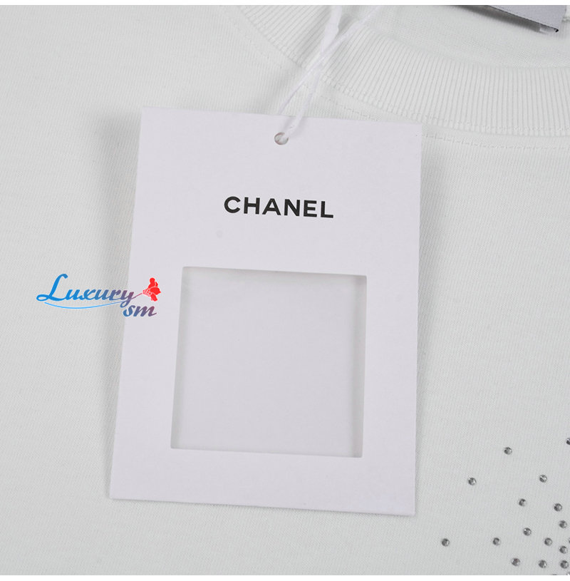 CHANEL-03175 샤넬 화이트 스터드 장식 티셔츠 남여공용