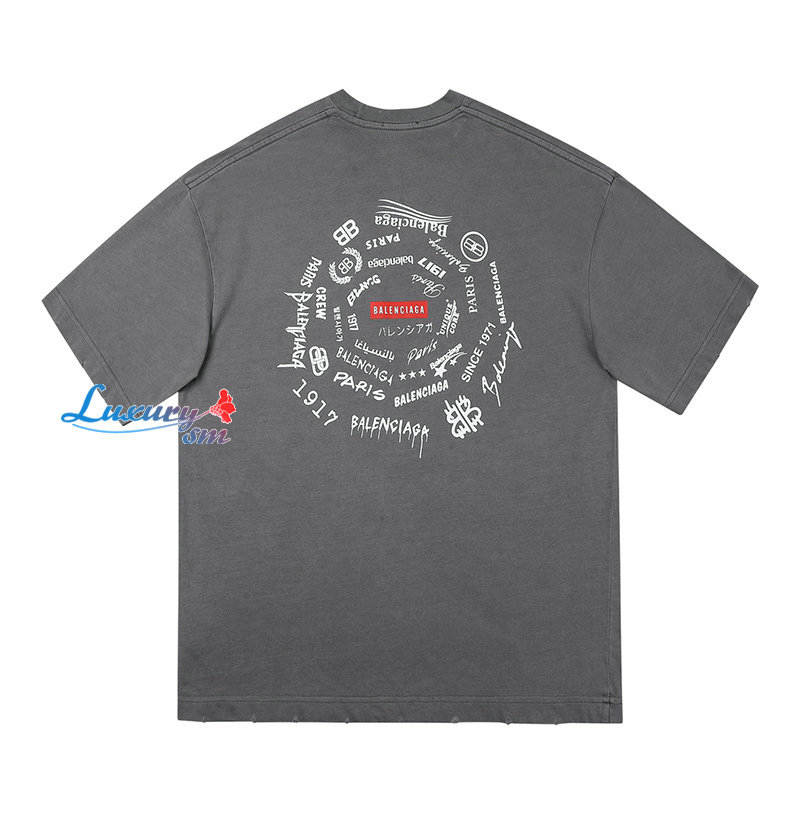 BALENCIAGA-031713 발렌시아가 그레이 프린트 장식 티셔츠 남여공용
