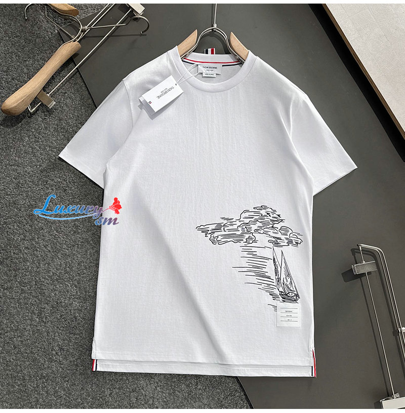 THOM BROWNE-031715 톰 브라운 화이트 프린트 장식 티셔츠 남성용
