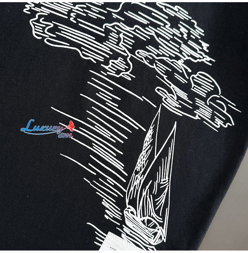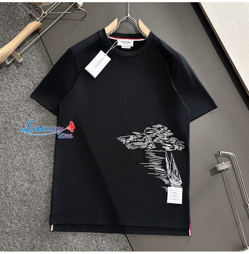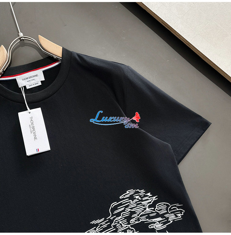 THOM BROWNE-031716 톰 브라운 블랙 프린트 장식 티셔츠 남성용