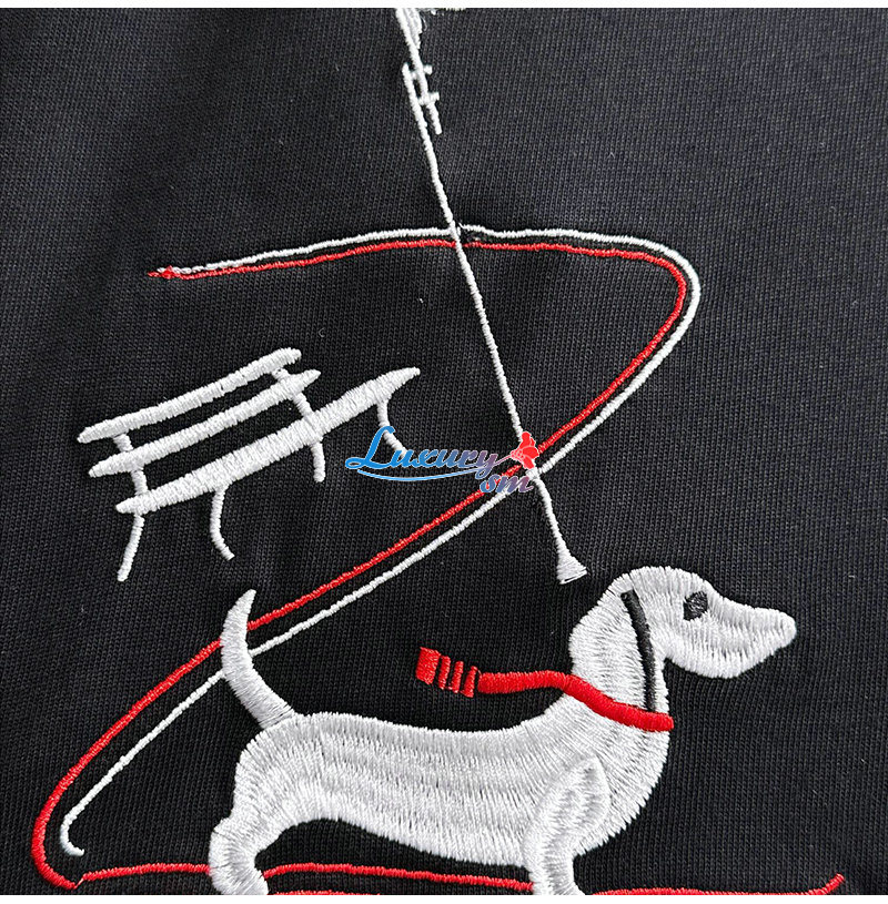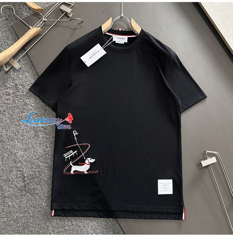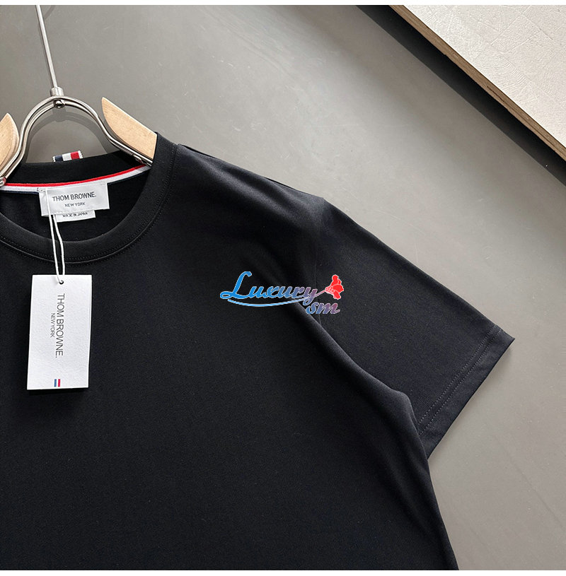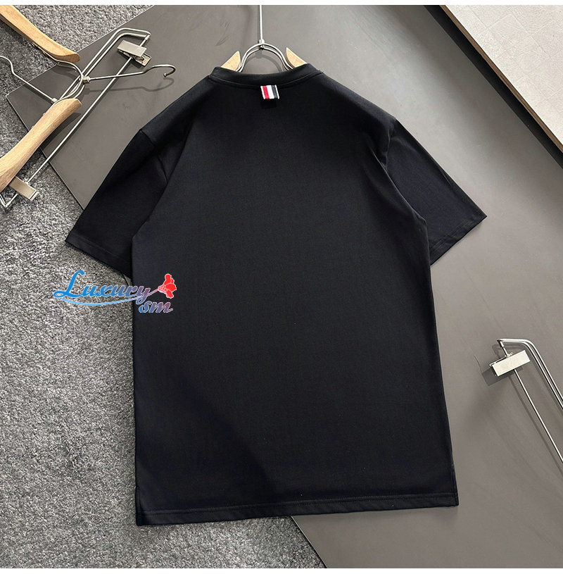 THOM BROWNE-03192 톰 브라운 블랙 아플리케 장식 티셔츠 남성용
