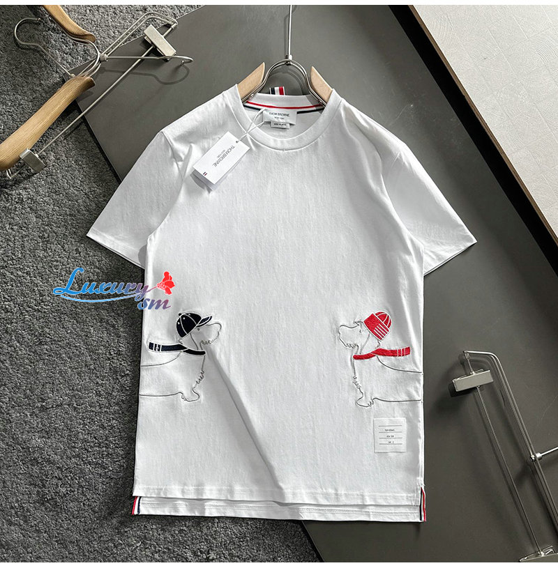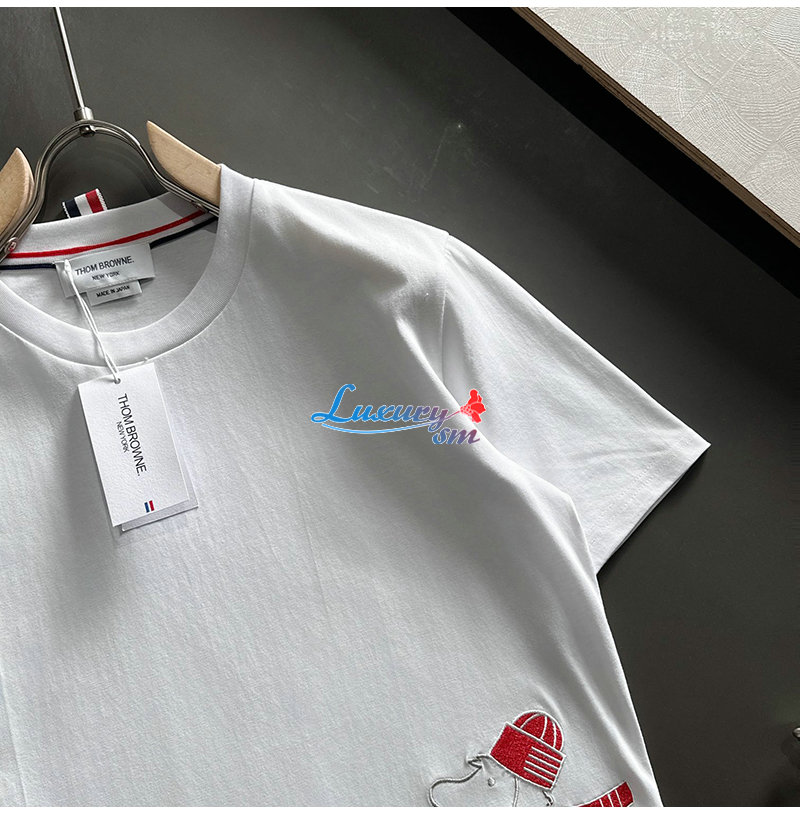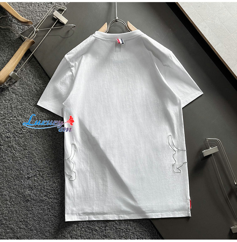 THOM BROWNE-031913 톰 브라운 화이트 아플리케 장식 티셔츠 남성용