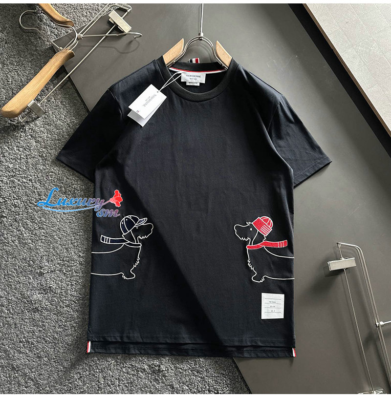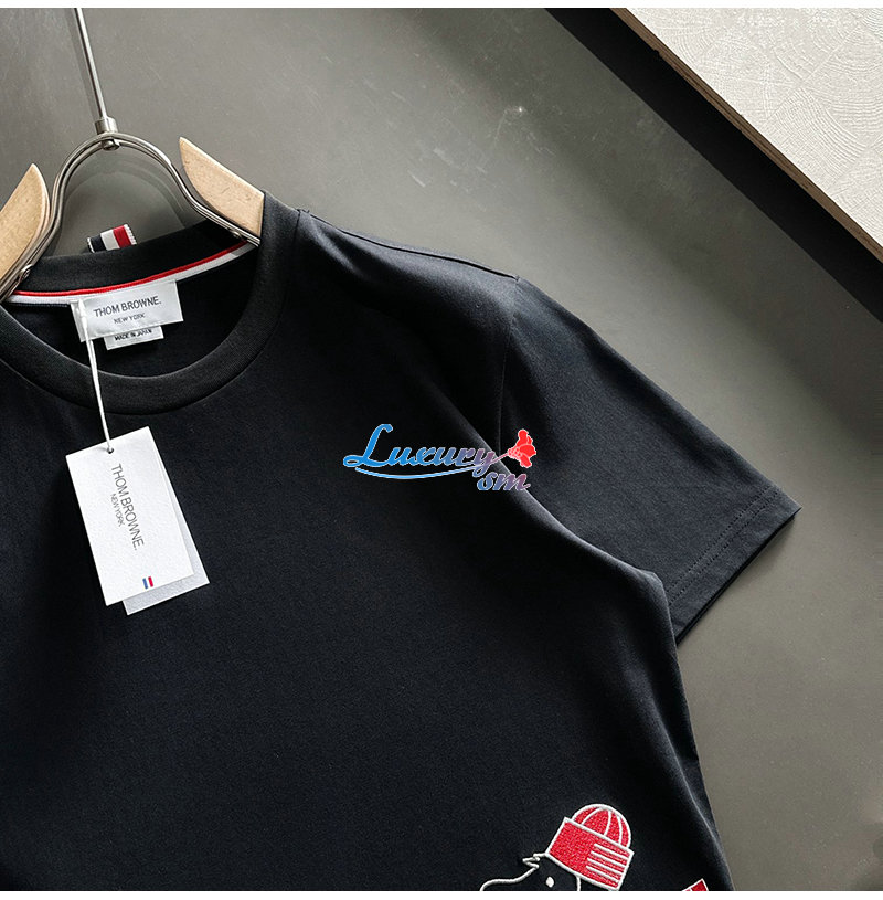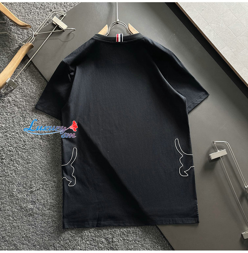 THOM BROWNE-031914 톰 브라운 블랙 아플리케 장식 티셔츠 남성용