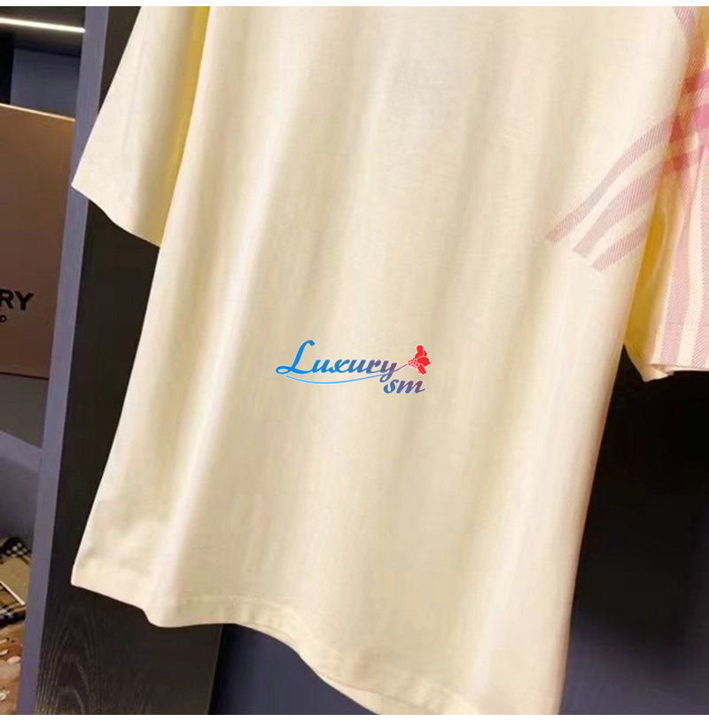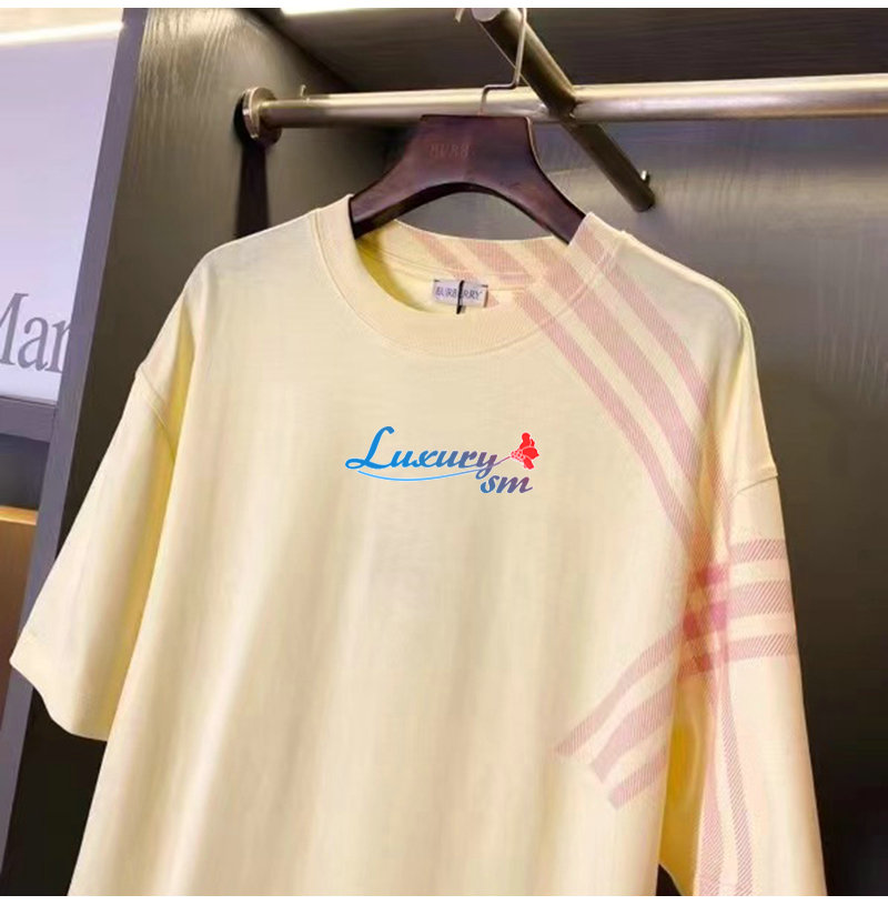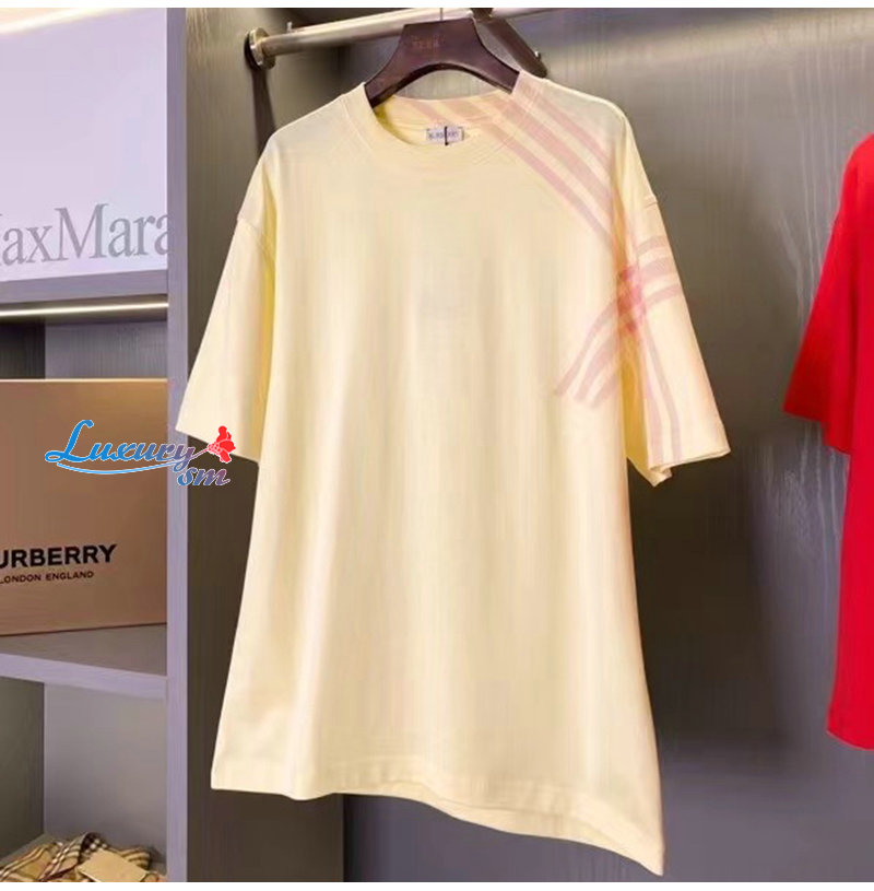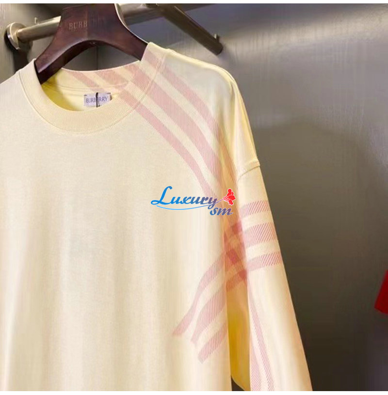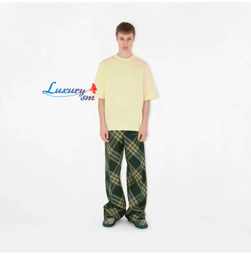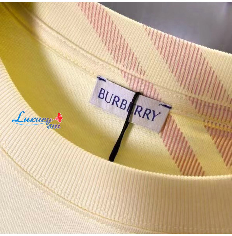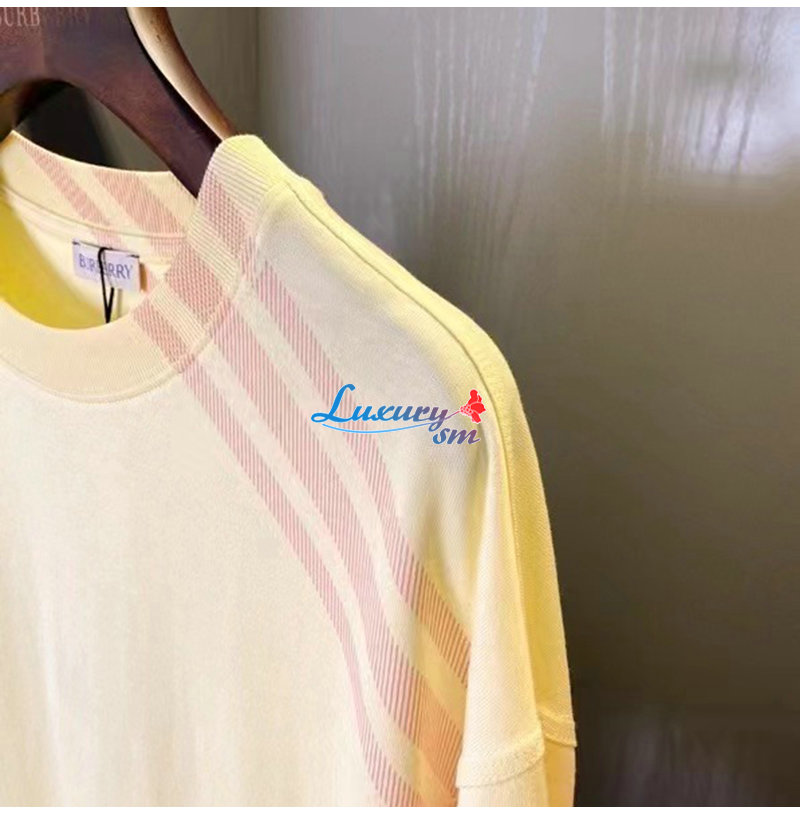 BURBERRY-80820531 버버리 옐로우 체크 슬리브 코튼 티셔츠 남성용