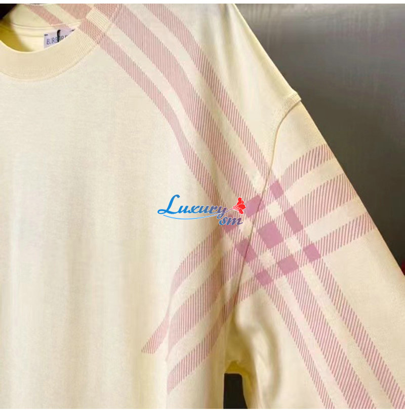 BURBERRY-80846851 버버리 화이트 체크 슬리브 코튼 티셔츠 남성용