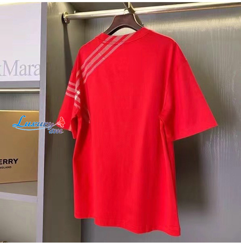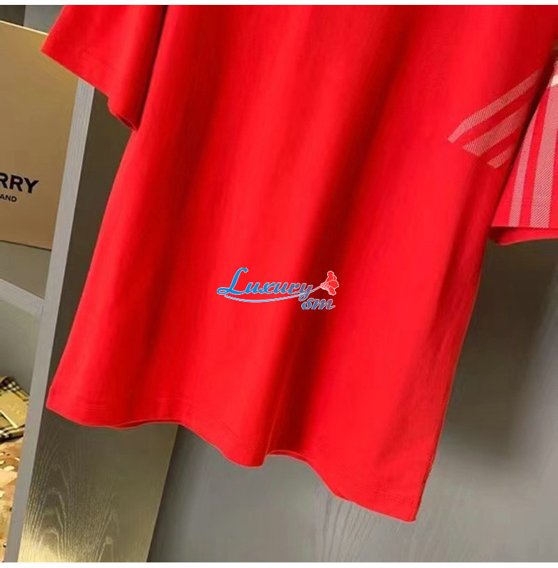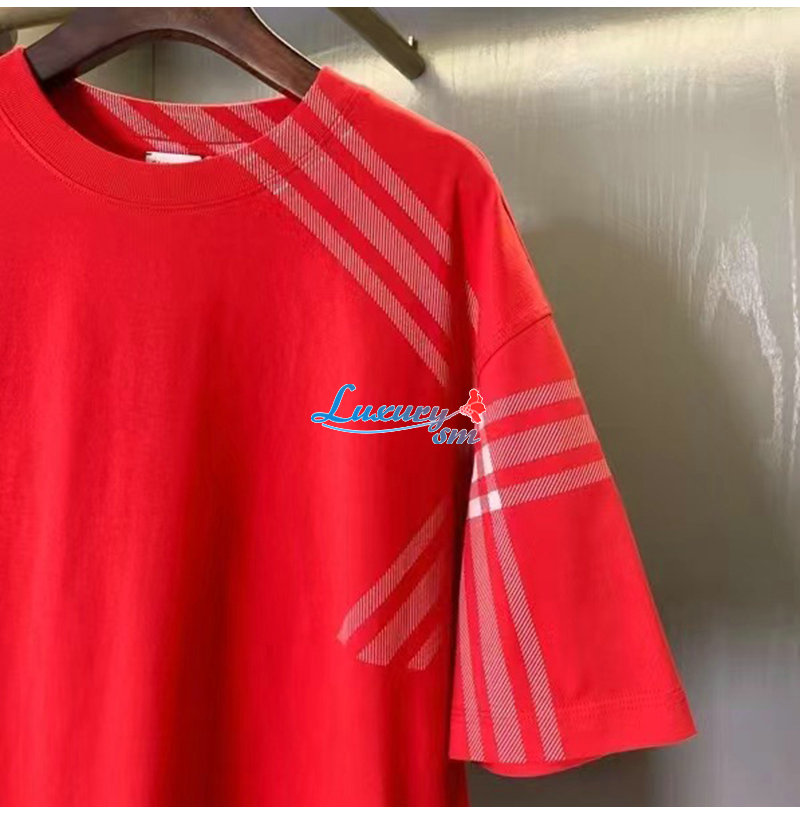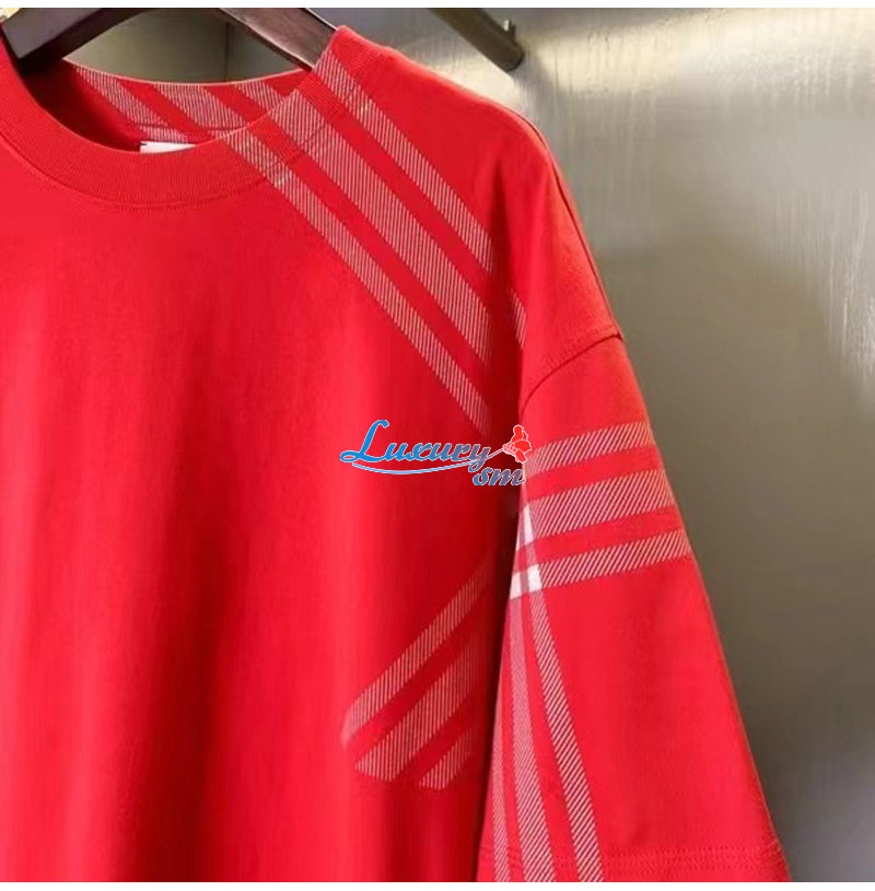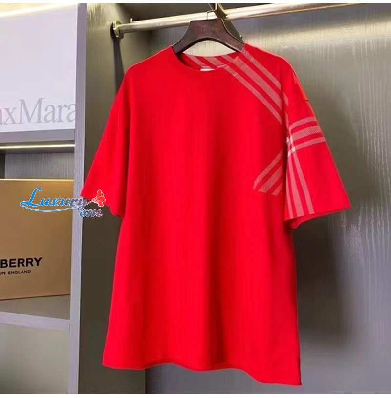 BURBERRY-80824091 버버리 레드 체크 슬리브 코튼 티셔츠 남성용