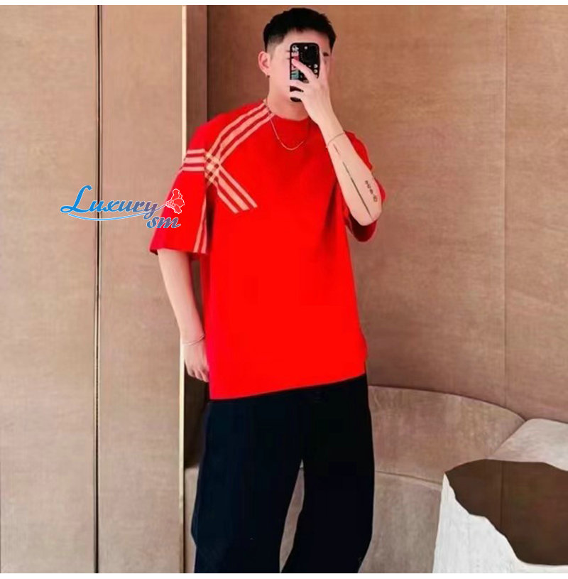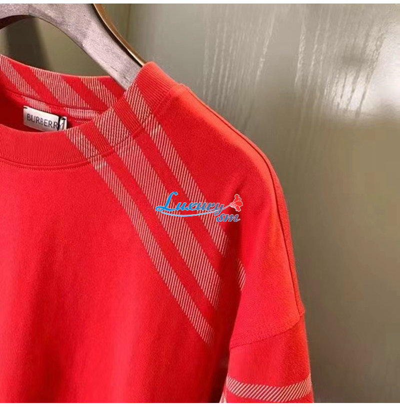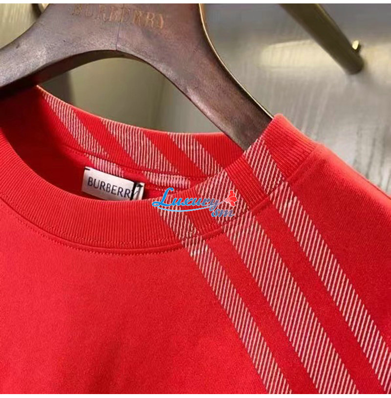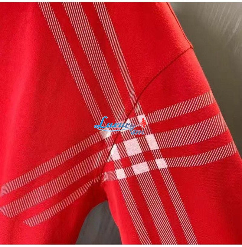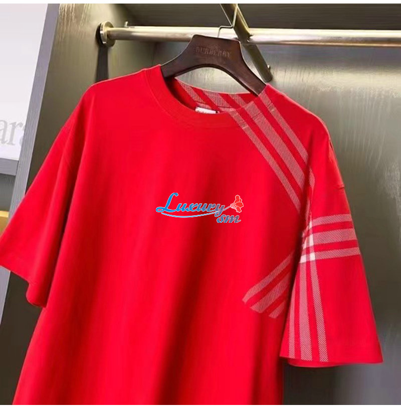 BURBERRY-80824091 버버리 레드 체크 슬리브 코튼 티셔츠 남성용