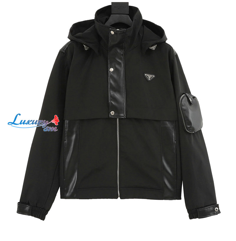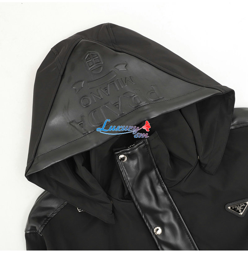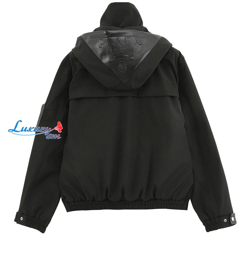 PRADA-03231 프라다 블랙 트라이앵글 로고 바람막이 후드 재킷 남성용