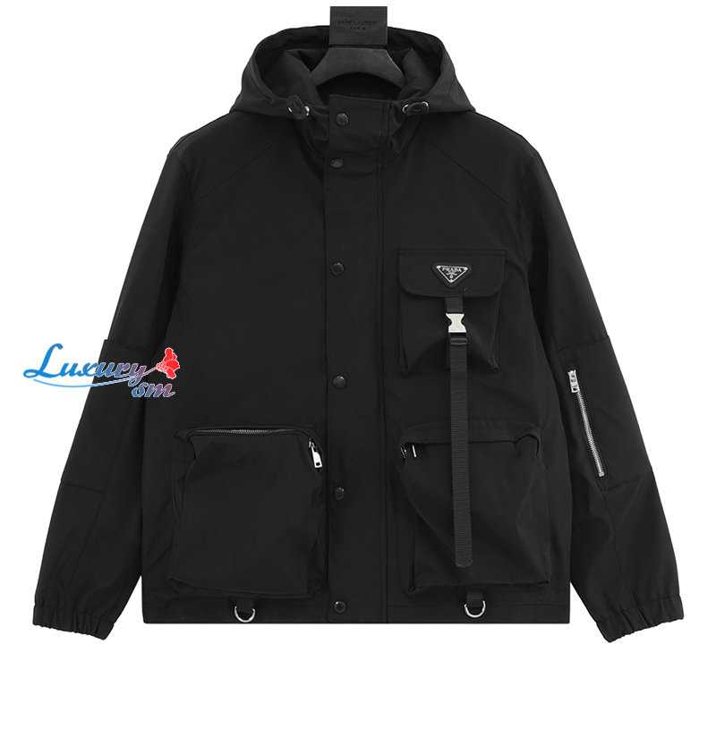 PRADA-03232 프라다 블랙 트라이앵글 로고 바람막이 후드 재킷 남성용