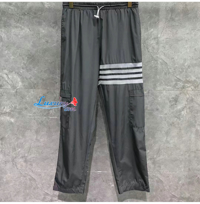 THOM BROWNE-032819 톰 브라운 그레이 스트라이프 장식 트레이닝 팬츠 남성용