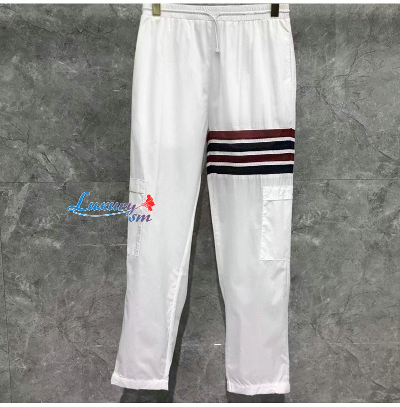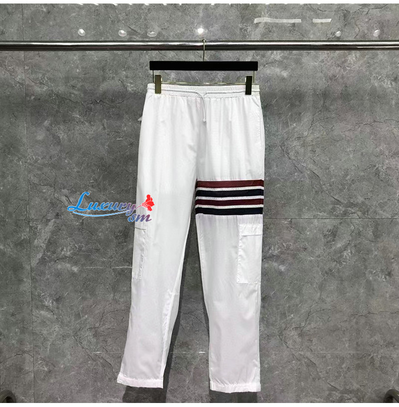 THOM BROWNE-032820 톰 브라운 화이트 스트라이프 장식 트레이닝 팬츠 남성용