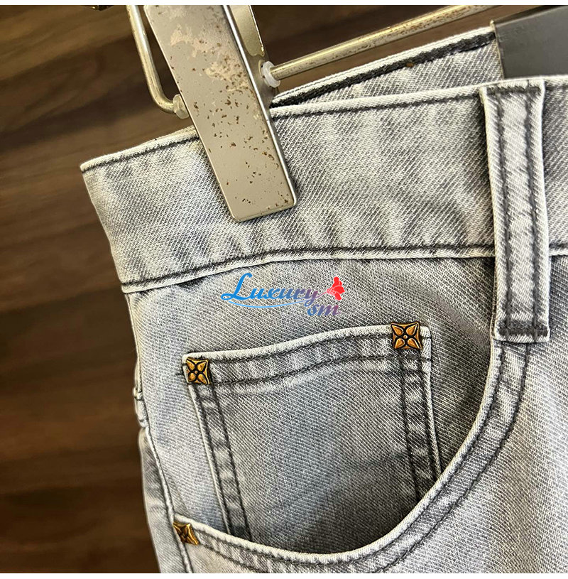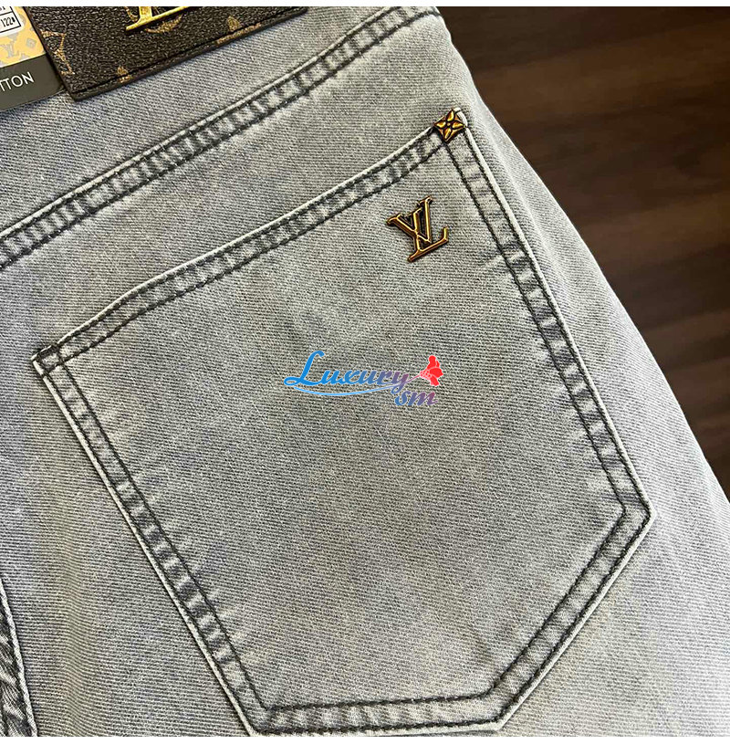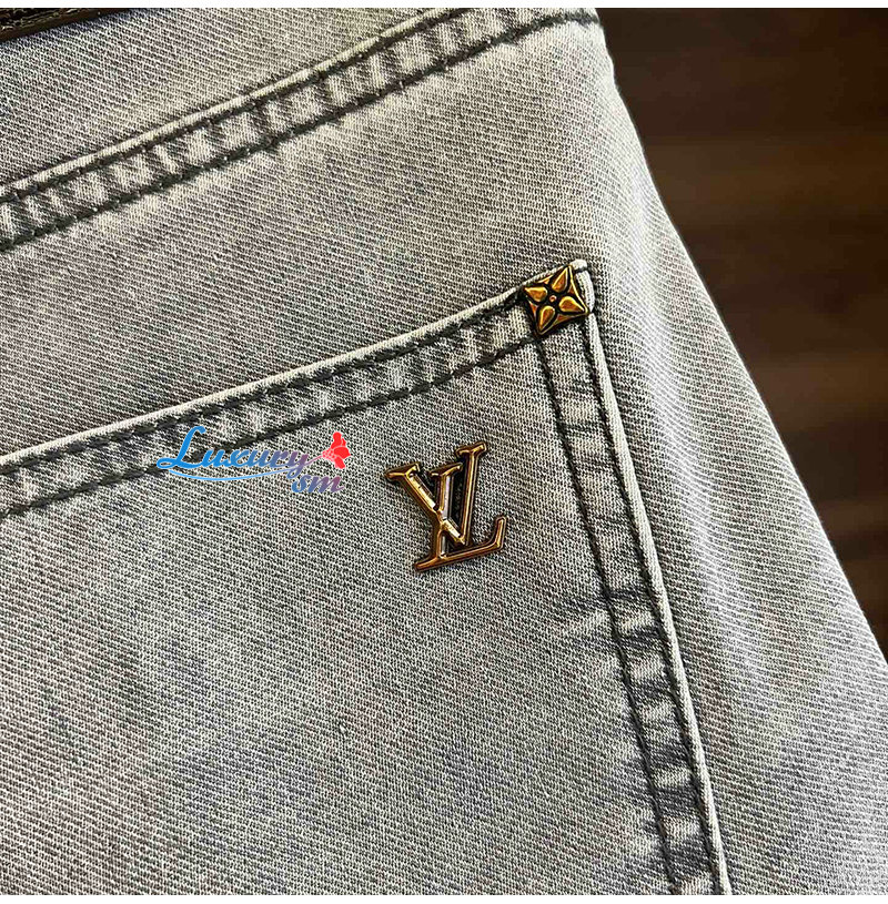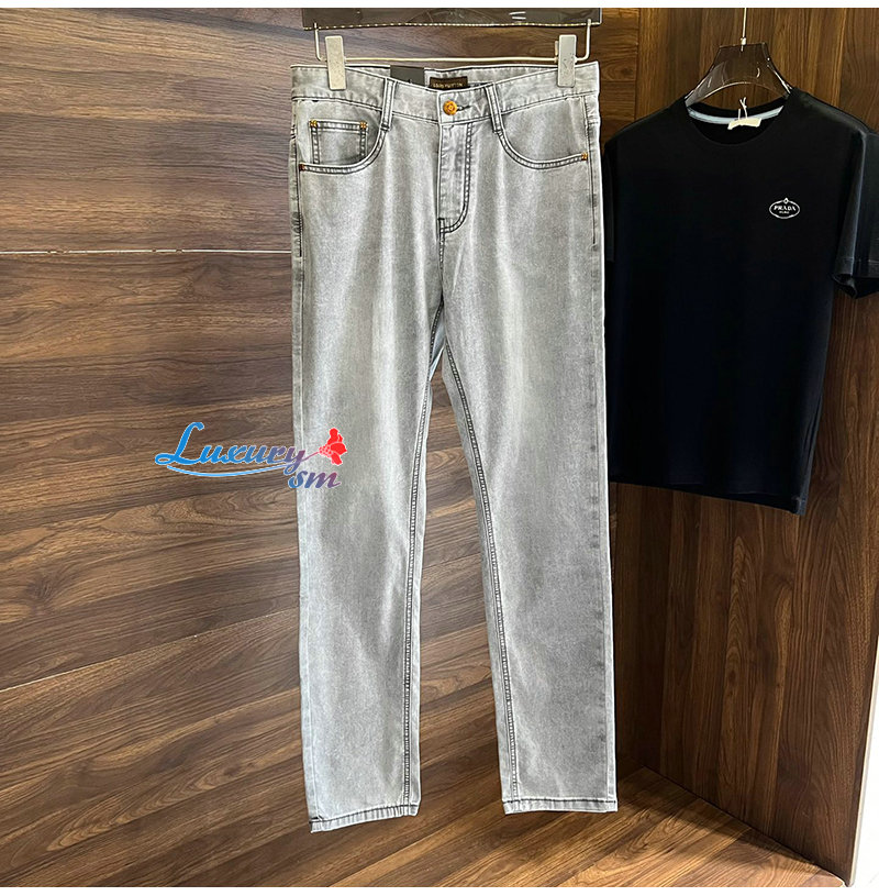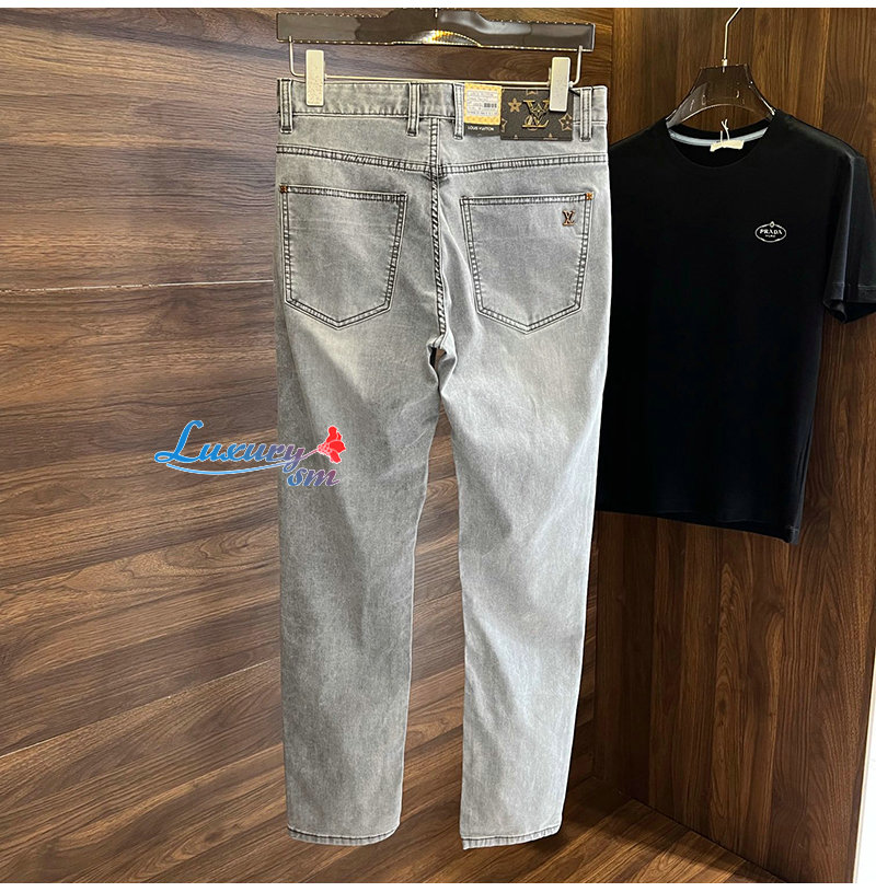 LOUIS VUITTON-04262 루이비통 라이트 그레이 메탈 LV 시그니처 장식 청바지 남성용