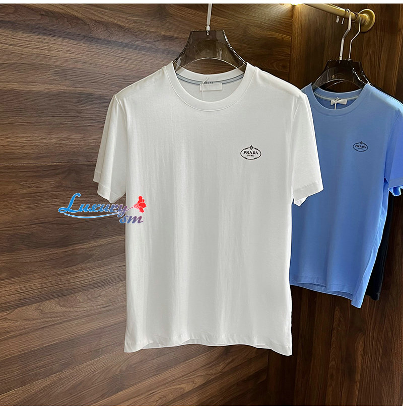 PRADA-04267 프라다 라이트 블루 로고 아플리케 장식 티셔츠 남성용 가격 : 140,000원