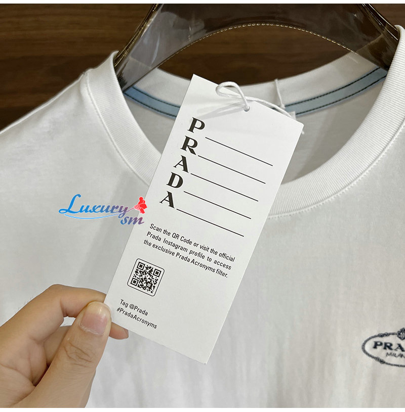 PRADA-04268 프라다 화이트 로고 아플리케 장식 티셔츠 남성용