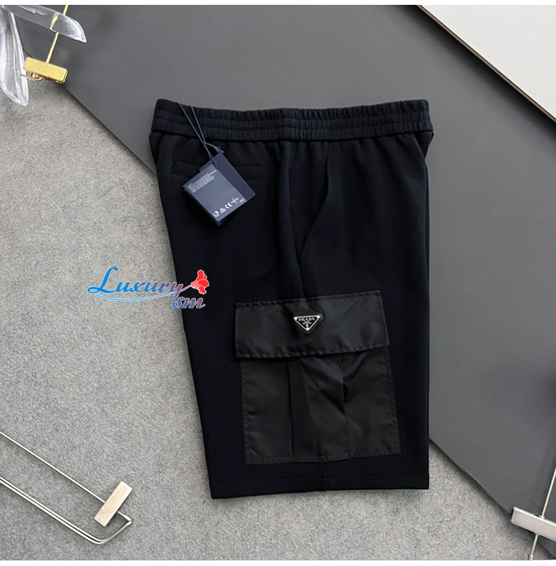 PRADA-05103 프라다 블랙 트라이앵글 로고 스웨트쇼츠 남성용