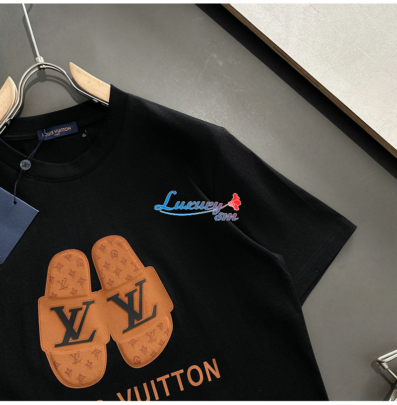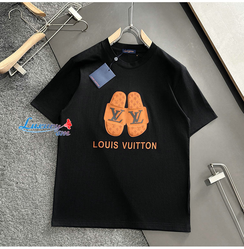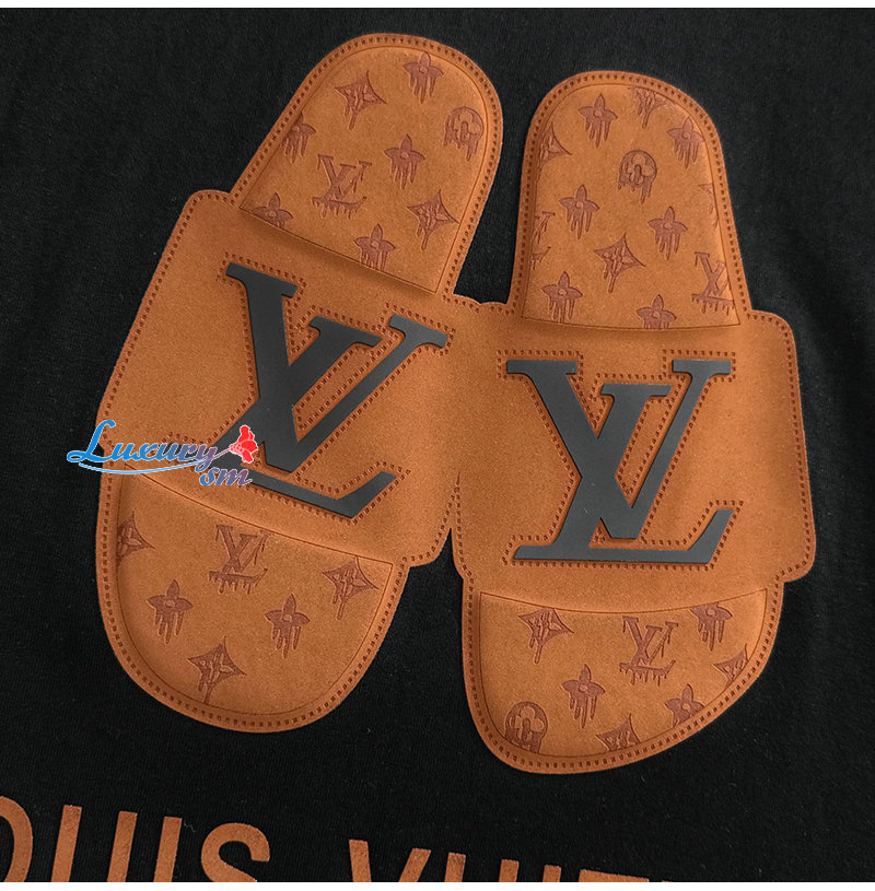 LOUIS VUITTON-05216 루이비통 블랙 슬리퍼 아플리케 장식 티셔츠 남성용