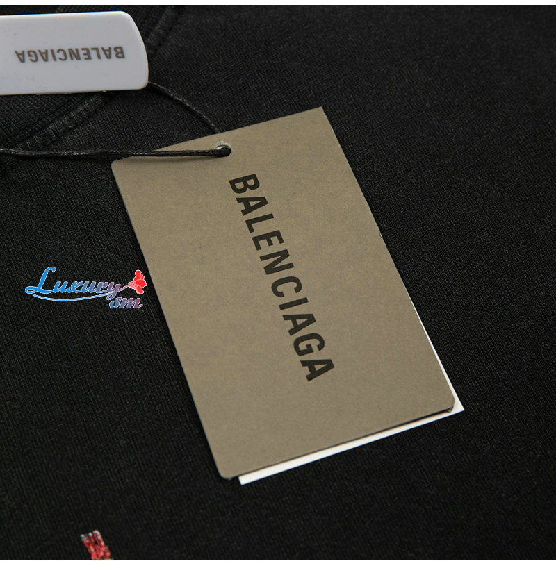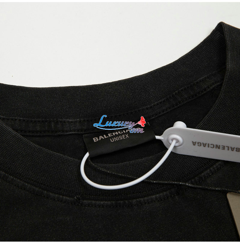 BALENCIAGA-05222 발렌시아가 블랙 프린트 장식 티셔츠 남여공용
