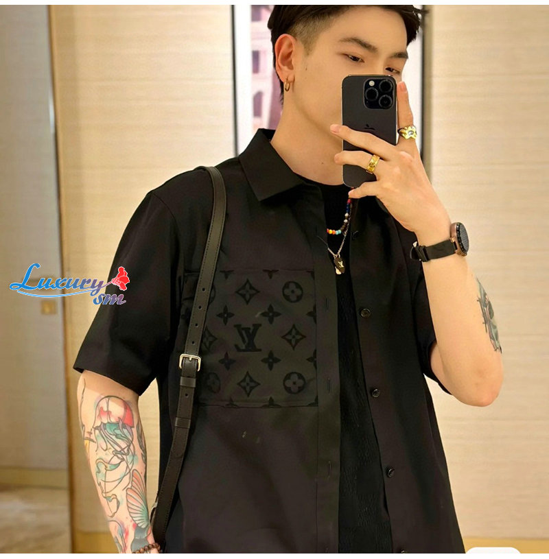 LOUIS VUITTON-05283 루이비통 블랙 모노그램 디테일 셔츠 남여공용