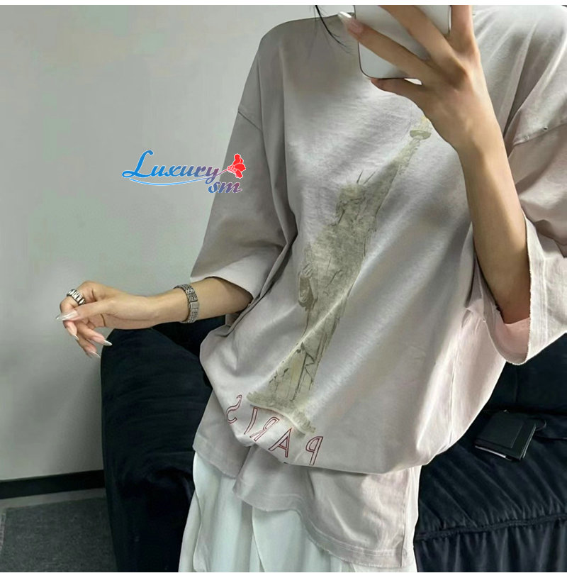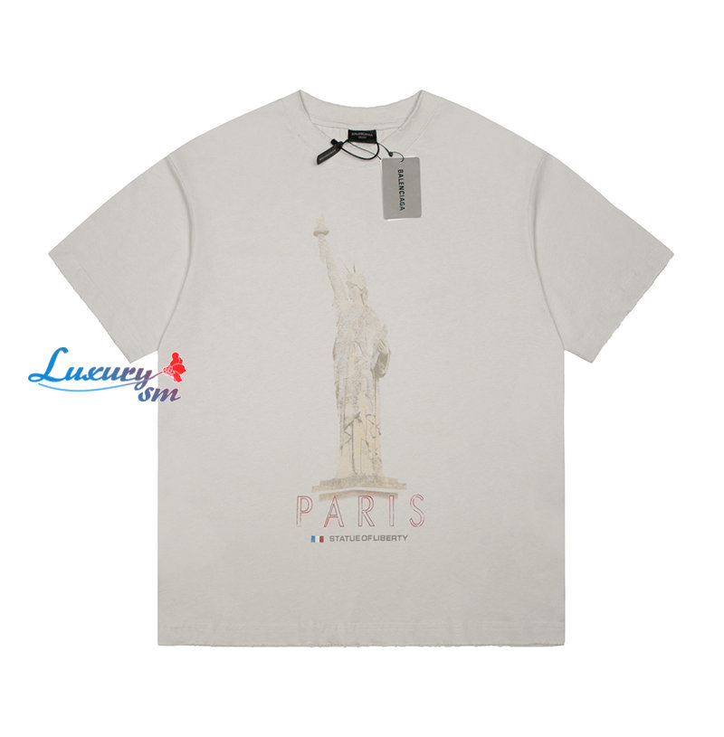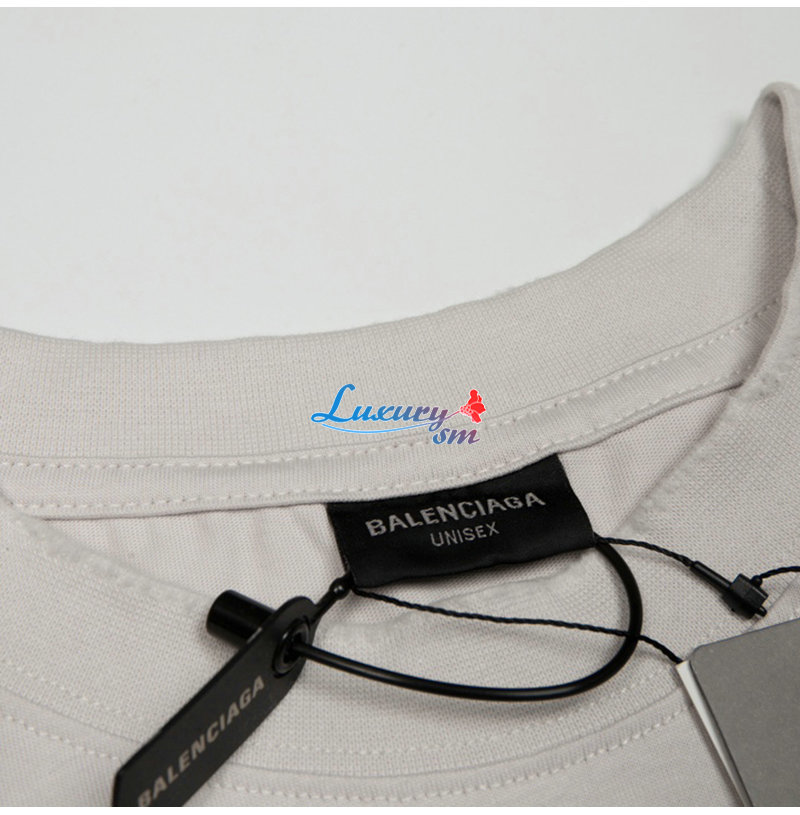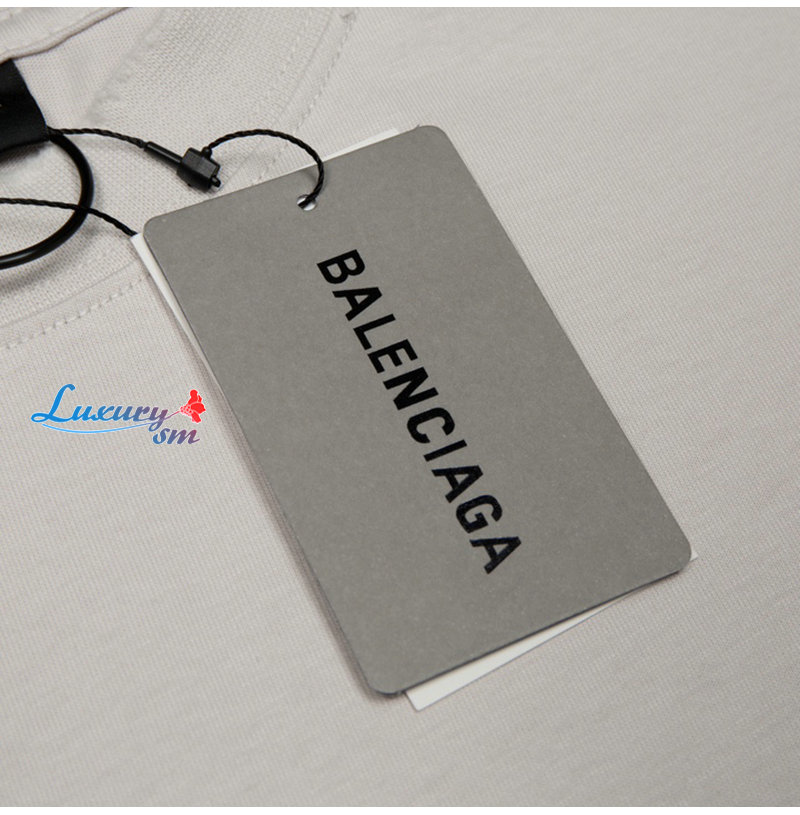 BALENCIAGA-06119 발렌시아가 라이트 그레이 프린트 장식 티셔츠 남여공용