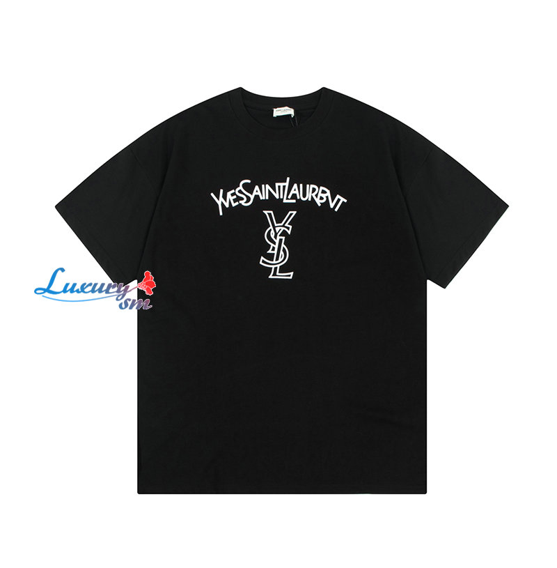 SAINT LAURENT-06131 생 로랑 블랙 로고 아플리케 장식 티셔츠 남여공용