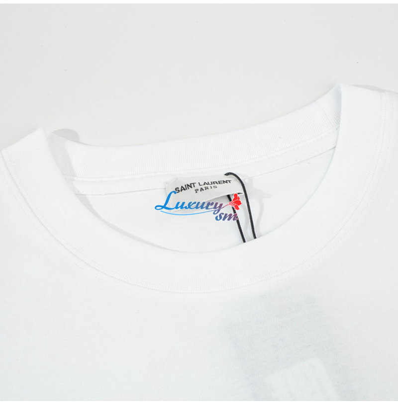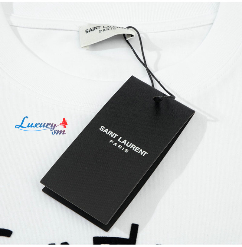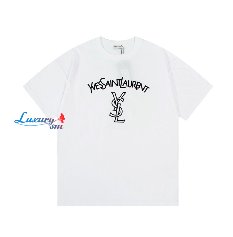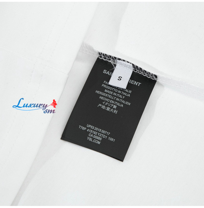 SAINT LAURENT-06132 생 로랑 화이트 로고 아플리케 장식 티셔츠 남여공용