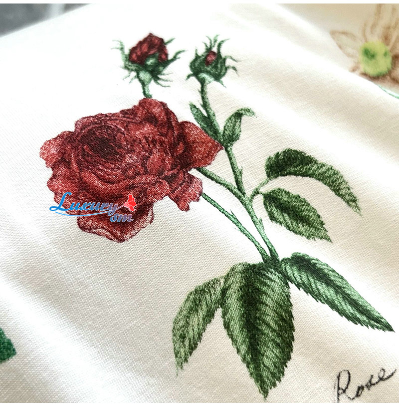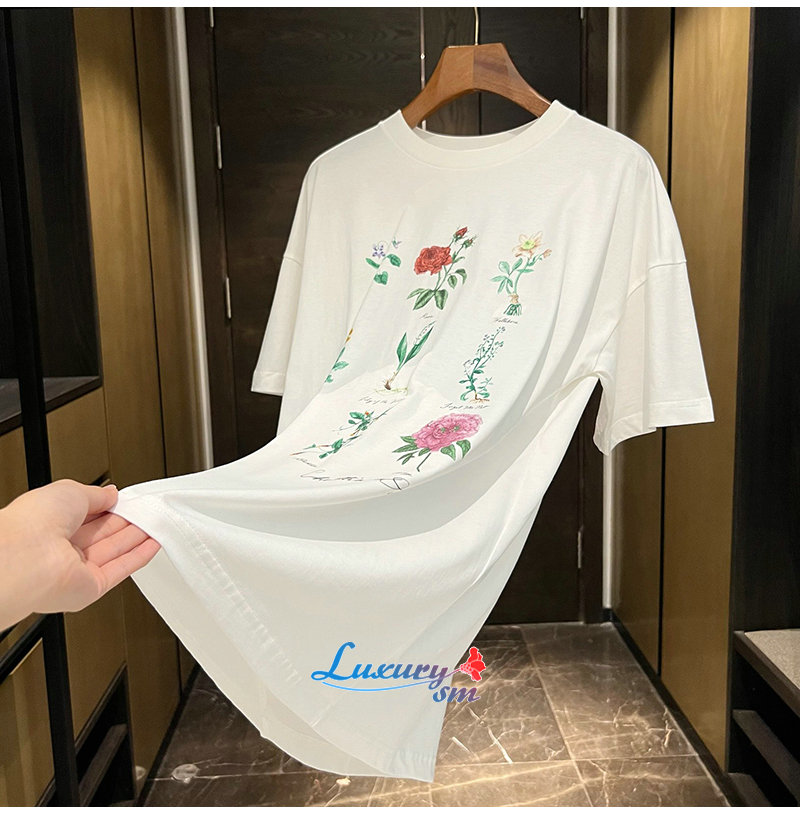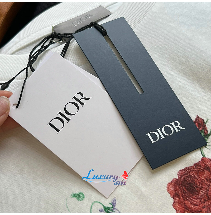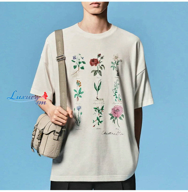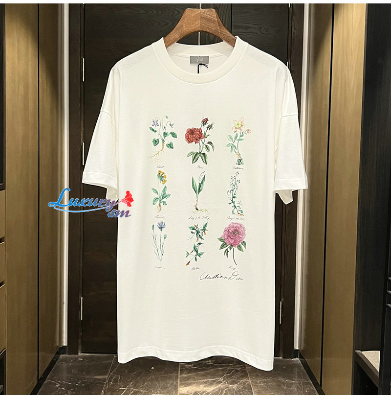 DIOR-06161 디올 아이보리 플라워 프린트 장식 티셔츠 남여공용