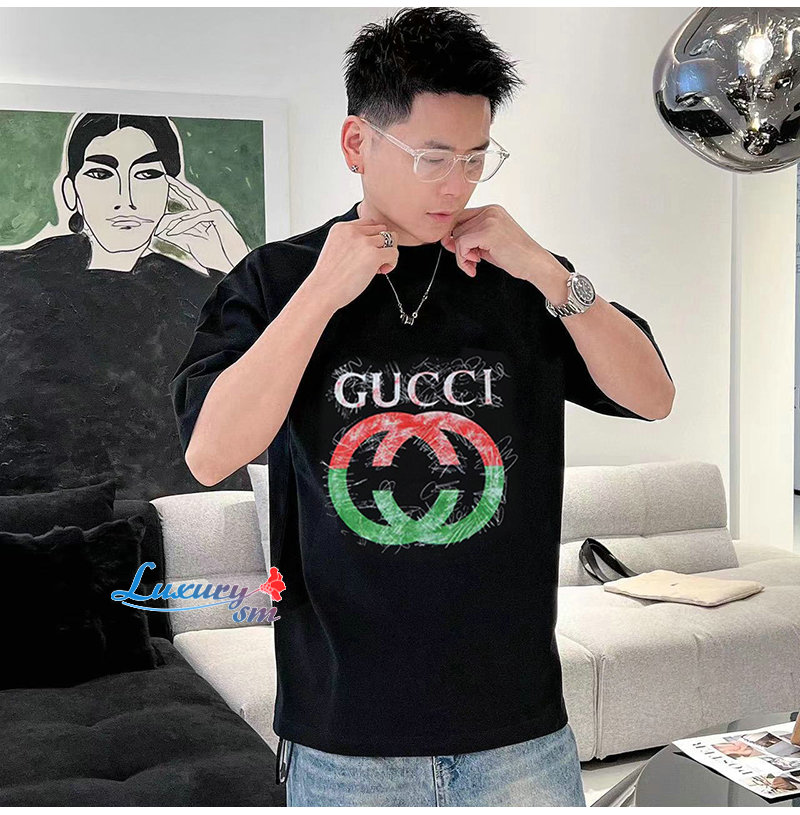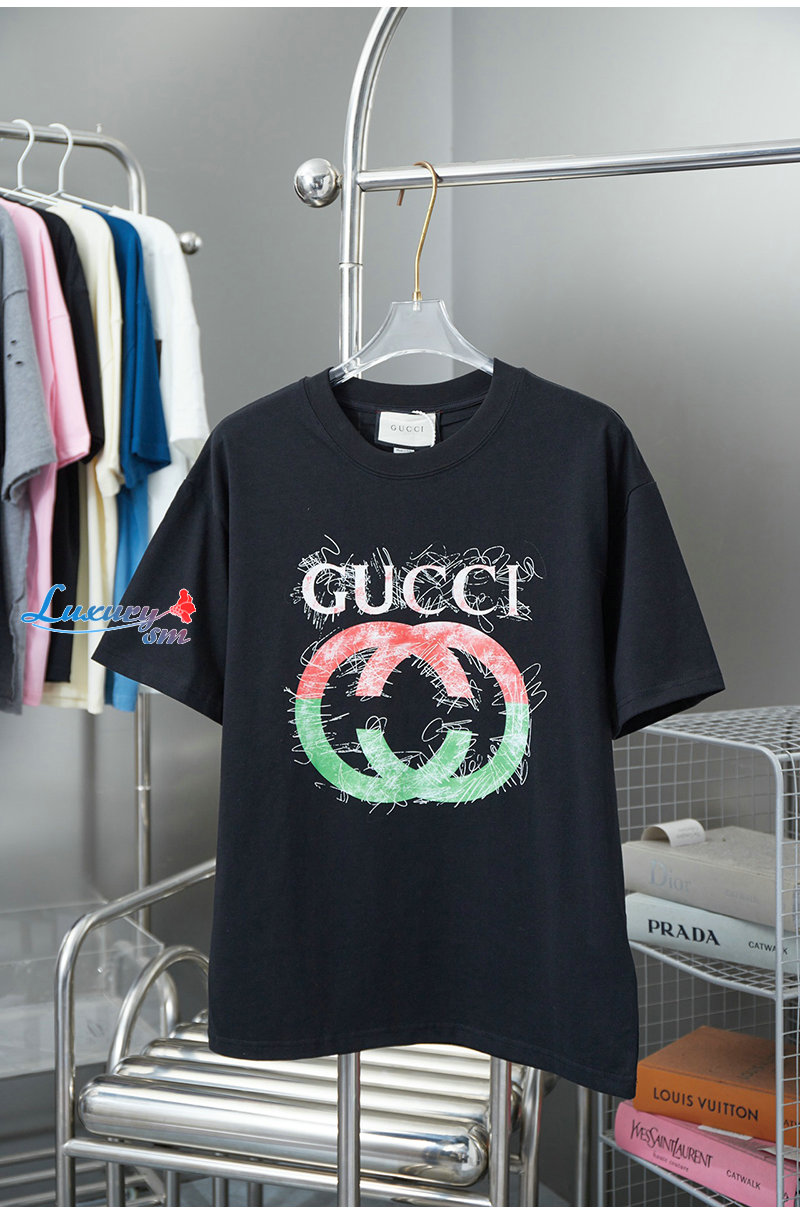GUCCI-06237 구찌 블랙 GG 프린트 장식 티셔츠